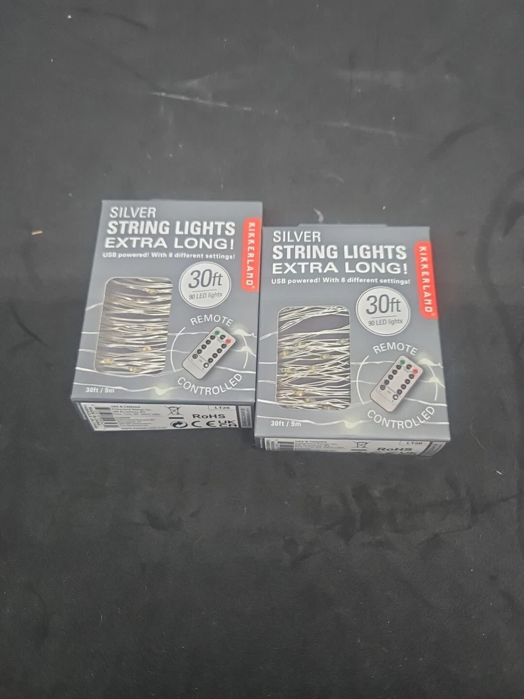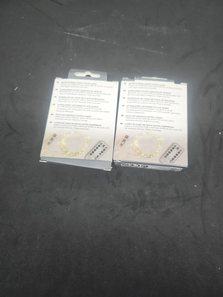 Elevate the ambiance of any room with this stunning LOT OF 2 Kikkerland lt02 Silver String Lights. With 20 LED lights and a remote control, you can easily adjust the lighting to your desired setting. The flexible wire allows you to hang it anywhere, such as windows, plants, and mirrors, to create a unique and personalized look. These string lights are perfect for indoor use and come in a sleek silver color. The clear white LED lights provide a warm and inviting glow, making them ideal for any room. With six feet of flexible wire, these lights are easy to install and can be used in a variety of settings.