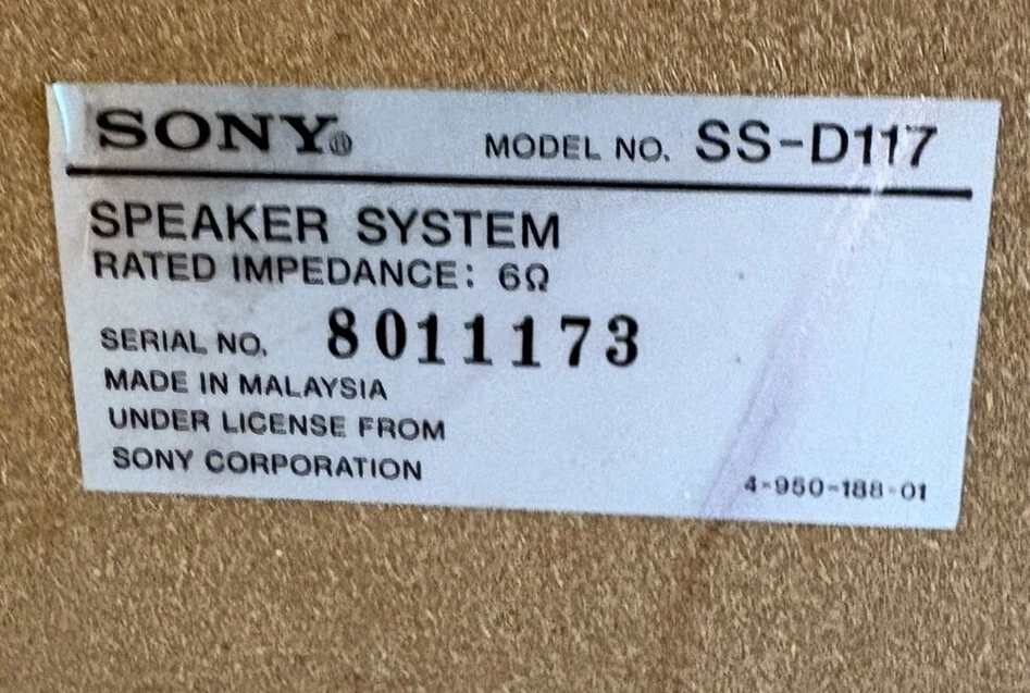 Sony bookshelf speakers. Set of two speakers only. Good condition for age, see pictures for minor scratches/dings etc. Sold as is, untested