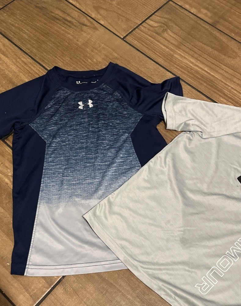 HomeLOT OF 2 Under Armour Boys UA HeatGear Short Sleeve Shirt Gray& Blue YSMALL A5