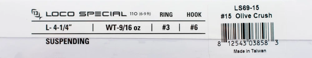 (LOT OF 3) 13 FISHING LOCO SPECIAL 110 9/16OZ LS69-15 OLIVE CRUSH H7305 (LOT OF 3) 13 FISHING LOCO SPECIAL 110 9/16OZ LS69-15 OLIVE CRUSH H7305 Slender suspense. The Loco Special creates the chaos of prey in peril. Tapping into the inner predator, the Loco Special will dart and pause in a manner most enticing to the most finicky of fish and literally forcing them to strike. Weighted for purposefully long casts, it will stay in the target rich environment for longer. If you need a bite, you know where to reach. Features Ultra-High Definition Paint Finishes High Definition Holographic Eyes Weight Transfer System Improves Casting Distance Mustad KVD Elite Triple Grip Treble Specs Length: 4-1/4" Weight: 9/16oz Hook: # 6 Type: Suspending Depth: 6-9ft PAYMENT TERMS VISA, MASTERCARD, AMEX, OR DISCOVER PAYPAL APPLE PAY GOOGLE PAY PAYMENTS MUST BE MADE IN FULL WITHIN 7 DAYS SHIPPING TERMS ALL PAID ORDERS SHIP WITHIN 1 BUSINESS DAY INSURANCE IS INCLUDED IN SHIPPING PRICE COMBINED ORDER POLICY ORDERS ARE COMBINED NIGHTLY AFTER END OF ALL AUCTIONS. DO NOT PAY FOR INDIVIDUAL ITEMS ENDING ON THE SAME DATE IF YOU WANT THE ORDER COMBINED. ALLOW US TIME TO SEND YOU A COMBINED INVOICE. ORDERS THAT ARE PAID FOR ON DIFFERENT DATES ARE NOT OUR RESPONSIBILITY TO COMBINE. ITEMS MUST BE PAID IN FULL WITHIN 7 DAYS FROM THE END OF 1ST AUCTION. COMBINED ORDER PRICING BAITS - EACH ADDITIONAL AUCTION $1.00 REELS - EACH ADDITIONAL AUCTION $1.00 RODS* - EACH ADDITIONAL AUCTION $1.00 *ALL RODS WILL ONLY COMBINE WITH RODS OPERATING HOURS BUSINESS HOURS ARE MONDAY - THURSDAY 9AM-5PM CENTRAL TIME & FRIDAY 9AM-3PM CENTRAL TIME, EXCLUDING HOLIDAYS EBAY MESSAGES ARE ANSWERED DURING NORMAL BUSINESS HOURS DUE TO THE OVERWHELMING AMOUNT OF ONLINE ORDERS WE ARE EXPERIENCING, LONGER THAN NORMAL RESPONSE TIME TO EMAILS MAY OCCUR. PLEASE BE PATIENT.