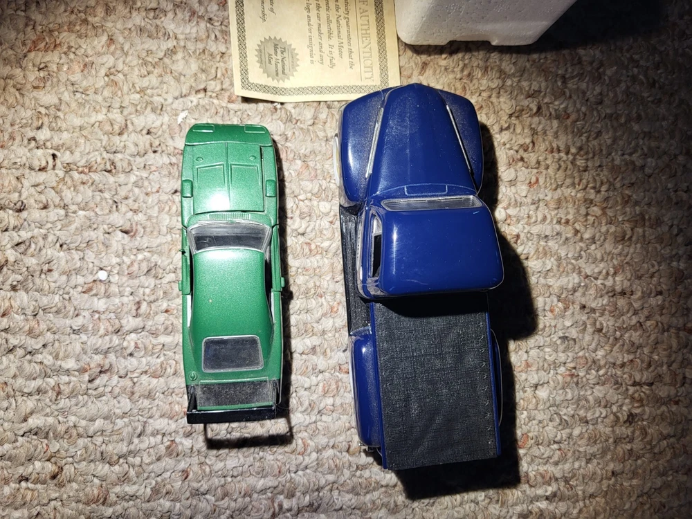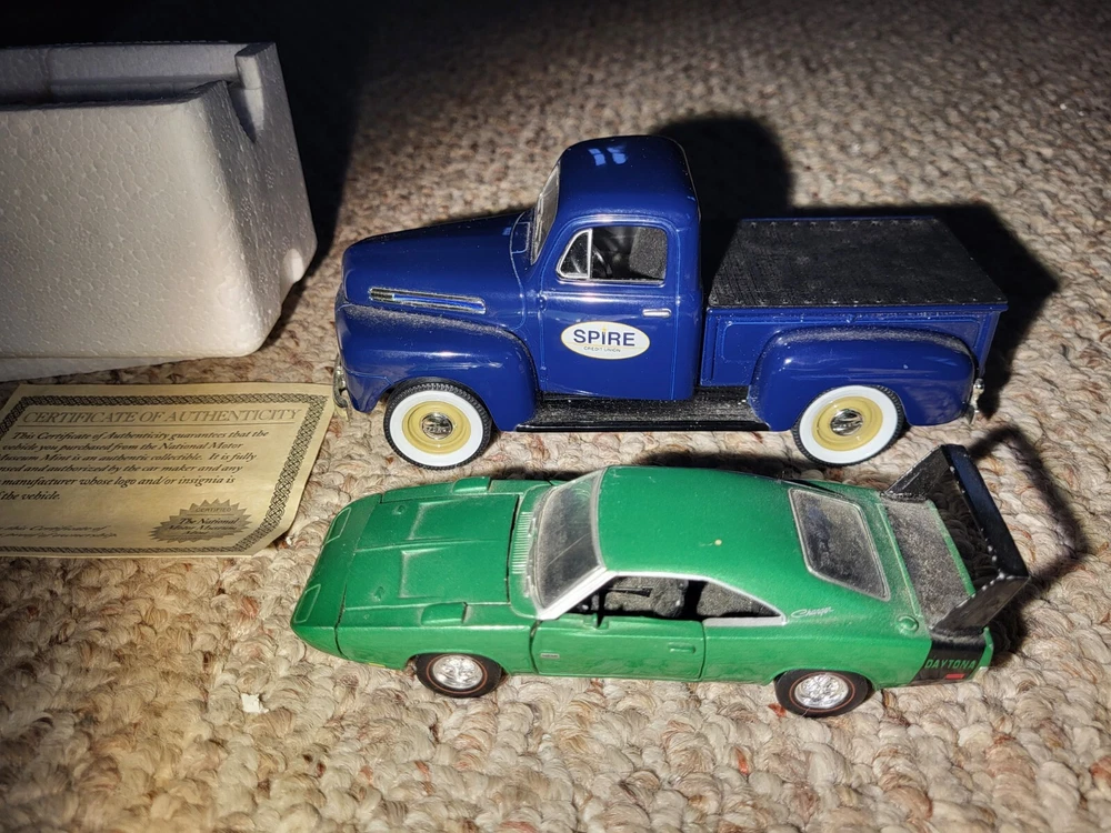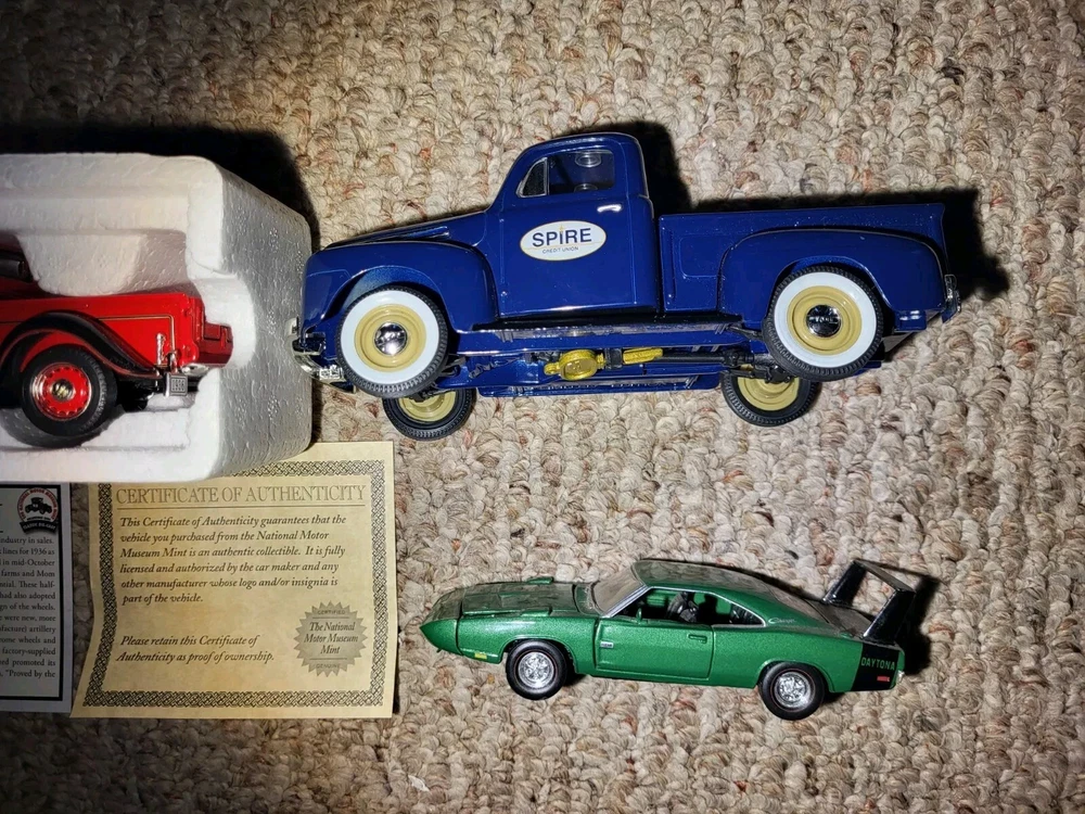 1936 ford pickup, red. New 1948 ford pickup, spire credit union blue. Used 1969 dodge charger, green. Used. Please refer to pictures for condition and details Same day shipping