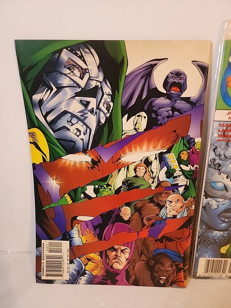 This lot includes three fantastic issues of the Fantastic Four comic book series. The comics feature the adventures of the superhero team, including Human Torch, The Thing, Invisible Woman, Namor, Red Ghost, Silver Surfer, Spider-Man, Mister Fantastic, and Iron Fist. The comics are written by Alan Davis, illustrated by Scott Lobdell, and colored by Salvador Larroca, among other talented artists and writers. The comics are in English, published by Marvel Comics, and are from the Modern Age era (1992-Now). They are boarded and perfect for collectors and fans of the action, superheroes, and adventure genres. The lot does not include signed copies, but it is a great addition to any collection of US Comics, especially for fans of the Fantastic Four team.