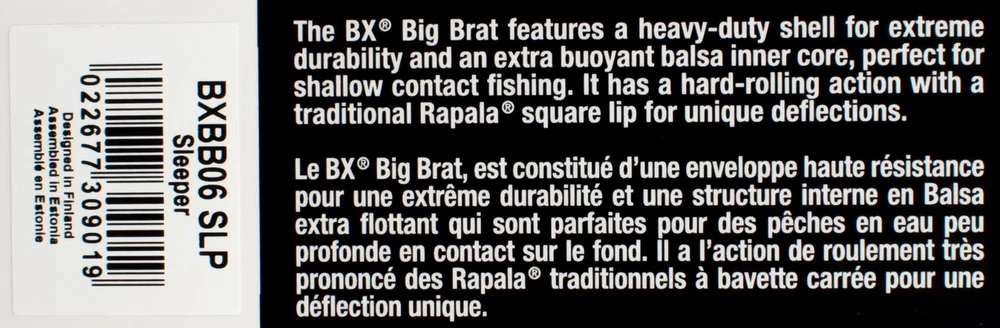 (LOT OF 3) RAPALA BX BIG BRAT 6 3/4OZ BXBB06-SLP SLEEPER CP7338 (LOT OF 3) RAPALA BX BIG BRAT 6 3/4OZ BXBB06-SLP SLEEPER CP7338 The BX Big Brat is a bully. Like it's older brother it is badly behaved and always looking for a fight Balsa inner core with an armor coating of rugged copolymer, it is the most durable, fish catchin' square bill ever. Features Balsa Core and Copolymer Outer Shell Modified Flat Side and a "V" Cut Belly Swim Action - Hard Flash, Wild Tracking, Kick Outs Use to target Bass/Multi-Species Gamefish VMC® Black Nickel Round Bend Hooks Specs Weight: 3/4oz Length: 2-3/4" Depth: 6' PAYMENT TERMS VISA, MASTERCARD, AMEX, OR DISCOVER PAYPAL APPLE PAY GOOGLE PAY PAYMENTS MUST BE MADE IN FULL WITHIN 7 DAYS SHIPPING TERMS ALL PAID ORDERS SHIP WITHIN 1 BUSINESS DAY INSURANCE IS INCLUDED IN SHIPPING PRICE COMBINED ORDER POLICY ORDERS ARE COMBINED NIGHTLY AFTER END OF ALL AUCTIONS. DO NOT PAY FOR INDIVIDUAL ITEMS ENDING ON THE SAME DATE IF YOU WANT THE ORDER COMBINED. ALLOW US TIME TO SEND YOU A COMBINED INVOICE. ORDERS THAT ARE PAID FOR ON DIFFERENT DATES ARE NOT OUR RESPONSIBILITY TO COMBINE. ITEMS MUST BE PAID IN FULL WITHIN 7 DAYS FROM THE END OF 1ST AUCTION. COMBINED ORDER PRICING BAITS - EACH ADDITIONAL AUCTION $1.00 REELS - EACH ADDITIONAL AUCTION $1.00 RODS* - EACH ADDITIONAL AUCTION $1.00 *ALL RODS WILL ONLY COMBINE WITH RODS OPERATING HOURS BUSINESS HOURS ARE MONDAY - THURSDAY 9AM-5PM CENTRAL TIME & FRIDAY 9AM-3PM CENTRAL TIME, EXCLUDING HOLIDAYS EBAY MESSAGES ARE ANSWERED DURING NORMAL BUSINESS HOURS DUE TO THE OVERWHELMING AMOUNT OF ONLINE ORDERS WE ARE EXPERIENCING, LONGER THAN NORMAL RESPONSE TIME TO EMAILS MAY OCCUR. PLEASE BE PATIENT.