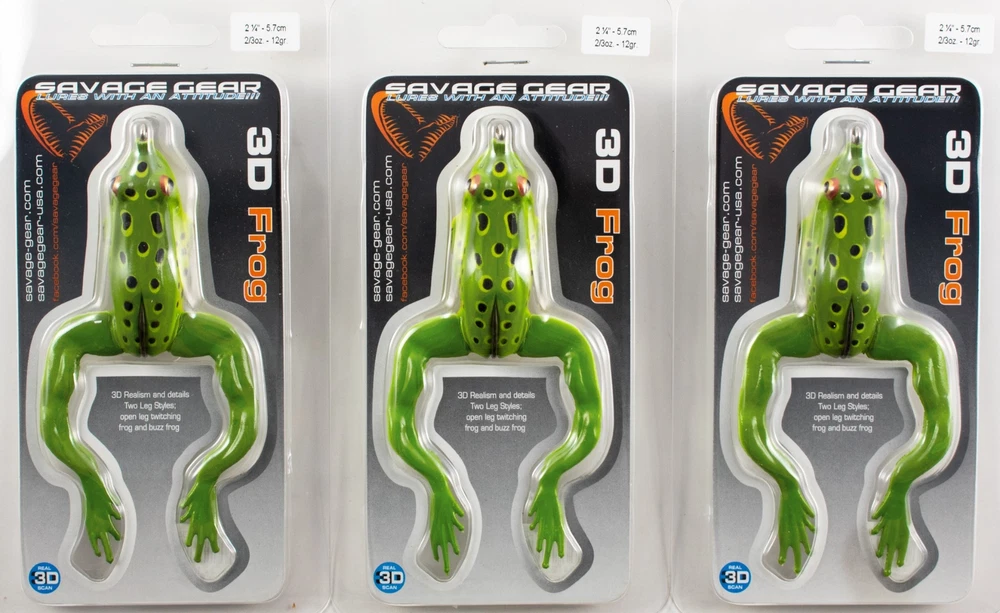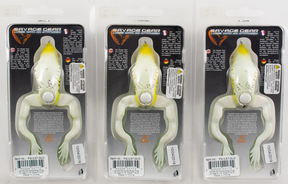 (LOT OF 3) SAVAGE GEAR 3D FROG 2-1/4" FG-IL57-GLG GREEN LEOPARD GLOSSY BM1300 (LOT OF 3) SAVAGE GEAR 3D FROG 2-1/4" FG-IL57-GLG GREEN LEOPARD GLOSSY BM1300 Features: 3D Hollow body realism and details Two Leg Styles; frog and buzz frog Specs: Length: 2-1/4" Weight: 2/3oz PAYMENT TERMS VISA, MASTERCARD, AMEX, OR DISCOVER PAYPAL APPLE PAY GOOGLE PAY PAYMENTS MUST BE MADE IN FULL WITHIN 7 DAYS SHIPPING TERMS ALL PAID ORDERS SHIP WITHIN 1 BUSINESS DAY INSURANCE IS INCLUDED IN SHIPPING PRICE COMBINED ORDER POLICY ORDERS ARE COMBINED NIGHTLY AFTER END OF ALL AUCTIONS. DO NOT PAY FOR INDIVIDUAL ITEMS ENDING ON THE SAME DATE IF YOU WANT THE ORDER COMBINED. ALLOW US TIME TO SEND YOU A COMBINED INVOICE. ORDERS THAT ARE PAID FOR ON DIFFERENT DATES ARE NOT OUR RESPONSIBILITY TO COMBINE. ITEMS MUST BE PAID IN FULL WITHIN 7 DAYS FROM THE END OF 1ST AUCTION. COMBINED ORDER PRICING BAITS - EACH ADDITIONAL AUCTION $1.00 REELS - EACH ADDITIONAL AUCTION $1.00 RODS* - EACH ADDITIONAL AUCTION $1.00 *ALL RODS WILL ONLY COMBINE WITH RODS OPERATING HOURS BUSINESS HOURS ARE MONDAY - THURSDAY 9AM-5PM CENTRAL TIME & FRIDAY 9AM-3PM CENTRAL TIME, EXCLUDING HOLIDAYS EBAY MESSAGES ARE ANSWERED DURING NORMAL BUSINESS HOURS DUE TO THE OVERWHELMING AMOUNT OF ONLINE ORDERS WE ARE EXPERIENCING, LONGER THAN NORMAL RESPONSE TIME TO EMAILS MAY OCCUR. PLEASE BE PATIENT.