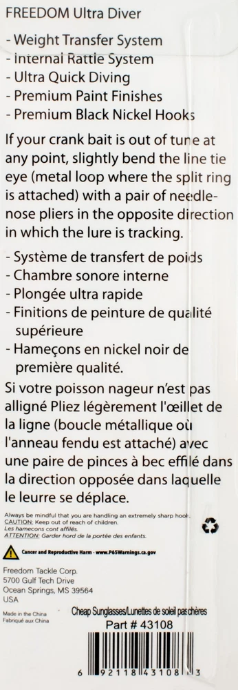 (LOT OF 6) FREEDOM TACKLE ULTRA DIVER SHAD 65 3/8OZ CHEAP SNGLSSES #43108 CO6357 (LOT OF 6) FREEDOM TACKLE ULTRA DIVER SHAD 65 3/8OZ CHEAP SNGLSSES #43108 CO6357 The FT Ultra Diver Minnow is just the bait you need to up your fishing game. The design team at American Baitworks developed the FT Ultra Diver Minnow with a forward-weighted design which ensures the minnow is primed and ready to dive deep as soon as it hits the water. The cloverleaf bill design also creates a radical deflection action that is sure to attract fish. We placed a lot of emphasis on performance and the realistic 3-piece, sonic-welded body design and integrated one-piece bill design add to the appeal of this bait. Plus, the premium VMC black nickel hooks provide even more durability and strength. You'll be cranking in big ones in no time with the Ultra Diver Minnow. Specs/Features Length: 2 1/2" Weight: 3/8oz Weight transfer system Internal rattle system Ultra quick diving Premium paint finishes Premium black nickel hooks PAYMENT TERMS VISA, MASTERCARD, AMEX, OR DISCOVER PAYPAL APPLE PAY GOOGLE PAY PAYMENTS MUST BE MADE IN FULL WITHIN 7 DAYS SHIPPING TERMS ALL PAID ORDERS SHIP WITHIN 1 BUSINESS DAY INSURANCE IS INCLUDED IN SHIPPING PRICE COMBINED ORDER POLICY ORDERS ARE COMBINED NIGHTLY AFTER END OF ALL AUCTIONS. DO NOT PAY FOR INDIVIDUAL ITEMS ENDING ON THE SAME DATE IF YOU WANT THE ORDER COMBINED. ALLOW US TIME TO SEND YOU A COMBINED INVOICE. ORDERS THAT ARE PAID FOR ON DIFFERENT DATES ARE NOT OUR RESPONSIBILITY TO COMBINE. ITEMS MUST BE PAID IN FULL WITHIN 7 DAYS FROM THE END OF 1ST AUCTION. COMBINED ORDER PRICING BAITS - EACH ADDITIONAL AUCTION $1.00 REELS - EACH ADDITIONAL AUCTION $1.00 RODS* - EACH ADDITIONAL AUCTION $1.00 *ALL RODS WILL ONLY COMBINE WITH RODS OPERATING HOURS BUSINESS HOURS ARE MONDAY - THURSDAY 9AM-5PM CENTRAL TIME & FRIDAY 9AM-3PM CENTRAL TIME, EXCLUDING HOLIDAYS EBAY MESSAGES ARE ANSWERED DURING NORMAL BUSINESS HOURS DUE TO THE OVERWHELMING AMOUNT OF ONLINE ORDERS WE ARE EXPERIENCING, LONGER THAN NORMAL RESPONSE TIME TO EMAILS MAY OCCUR. PLEASE BE PATIENT.