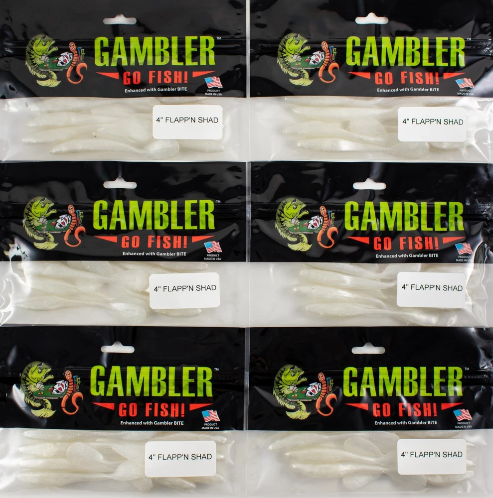 (LOT OF 6) GAMBLER LURES 4" FLAPP'N SHAD WHITE LIGHTNING BM3419 (LOT OF 6) GAMBLER LURES 4" FLAPP'N SHAD WHITE LIGHTNING BM3419 Some experienced anglers have discovered the secret of a big, flat paddle tail. When you swim a soft plastic bait with these tails they will flap and vibrate with a thump hard enough you can feel it in your rod almost like a crankbait. Fish respond to this thump and the smaller profiles of the soft baits can get bit even better. Gambler has produced possibly the ultimate paddle tail soft bait, the Flappin' Shad. The front half of the Flappin' Shad is built like the standard fluke style soft jerk bait with a fish shape and a cut in the belly for your hook, but the back half features a long, thin tail with a big paddle for maximum flapping and thumping. Now, when you twitch your soft jerk bait you'll have the added advantage of the flapping tail, or rig the Flappin' Shad weedless on a darter head and swim it through heavy cover like a weedless crankbait for a presentation few fish have ever seen. As with all Gambler soft plastic baits the Flapping Shad is loaded with Bang pure crawdad and shad oils. PAYMENT TERMS VISA, MASTERCARD, AMEX, OR DISCOVER PAYPAL APPLE PAY GOOGLE PAY PAYMENTS MUST BE MADE IN FULL WITHIN 7 DAYS SHIPPING TERMS ALL PAID ORDERS SHIP WITHIN 1 BUSINESS DAY INSURANCE IS INCLUDED IN SHIPPING PRICE COMBINED ORDER POLICY ORDERS ARE COMBINED NIGHTLY AFTER END OF ALL AUCTIONS. DO NOT PAY FOR INDIVIDUAL ITEMS ENDING ON THE SAME DATE IF YOU WANT THE ORDER COMBINED. ALLOW US TIME TO SEND YOU A COMBINED INVOICE. ORDERS THAT ARE PAID FOR ON DIFFERENT DATES ARE NOT OUR RESPONSIBILITY TO COMBINE. ITEMS MUST BE PAID IN FULL WITHIN 7 DAYS FROM THE END OF 1ST AUCTION. COMBINED ORDER PRICING BAITS - EACH ADDITIONAL AUCTION $1.00 REELS - EACH ADDITIONAL AUCTION $1.00 RODS* - EACH ADDITIONAL AUCTION $1.00 *ALL RODS WILL ONLY COMBINE WITH RODS OPERATING HOURS BUSINESS HOURS ARE MONDAY - THURSDAY 9AM-5PM CENTRAL TIME & FRIDAY 9AM-3PM CENTRAL TIME, EXCLUDING HOLIDAYS EBAY MESSAGES ARE ANSWERED DURING NORMAL BUSINESS HOURS DUE TO THE OVERWHELMING AMOUNT OF ONLINE ORDERS WE ARE EXPERIENCING, LONGER THAN NORMAL RESPONSE TIME TO EMAILS MAY OCCUR. PLEASE BE PATIENT.
