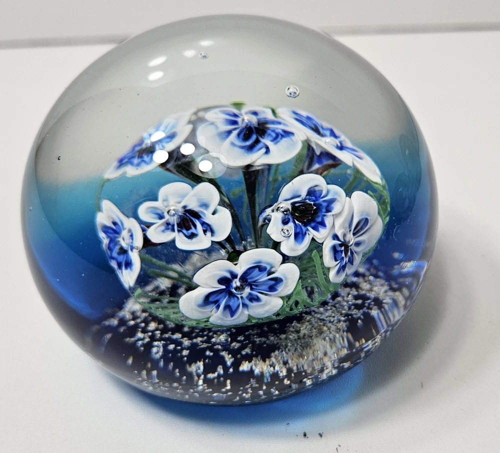 $ 55.45ART GLASS PAPER WEIGHT CASED BLUE GOLD FLAKE SPIRAL -MACADAMIA CASTLE SOUVENIR