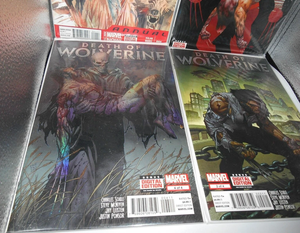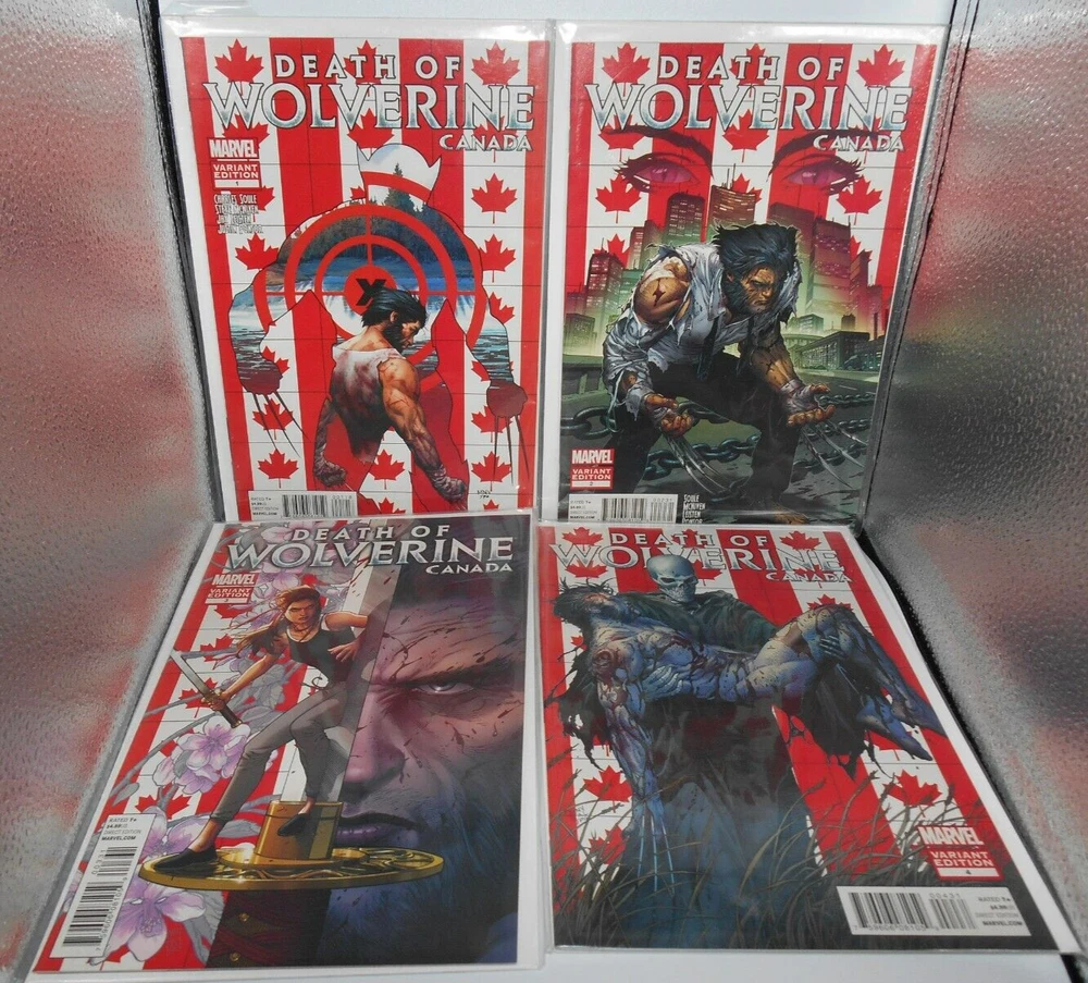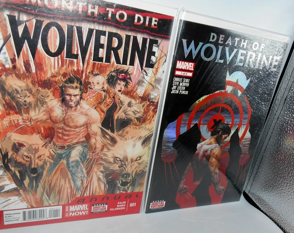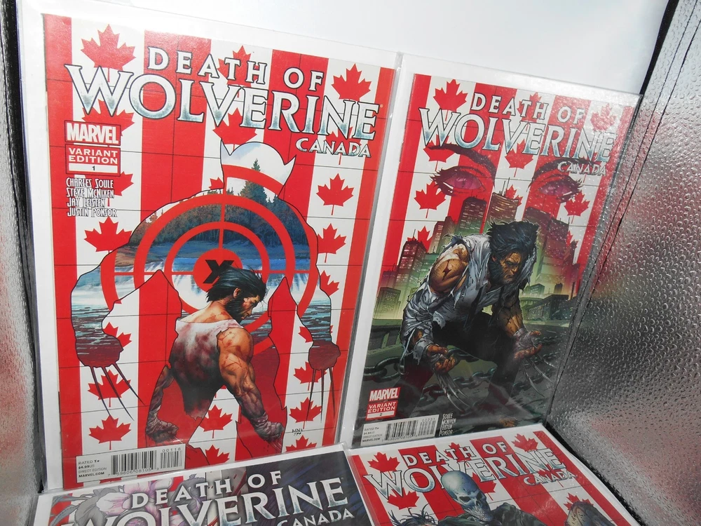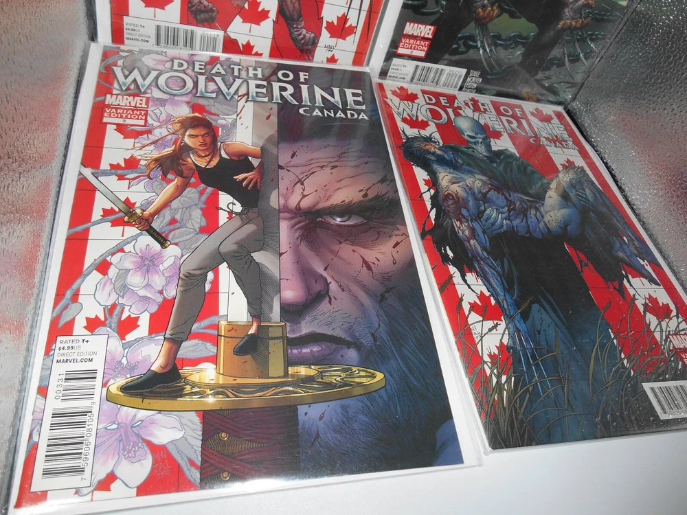 LOT OF 9 2014 DEATH OF WOLVERINE COMIC BOOK FOIL COVER & CANADA ED. 1 MONTH ANNU