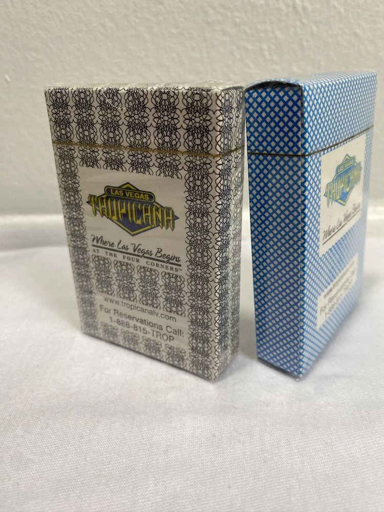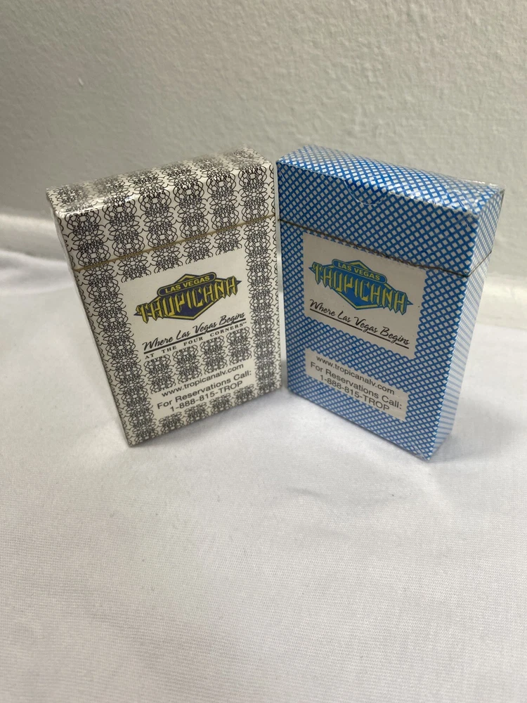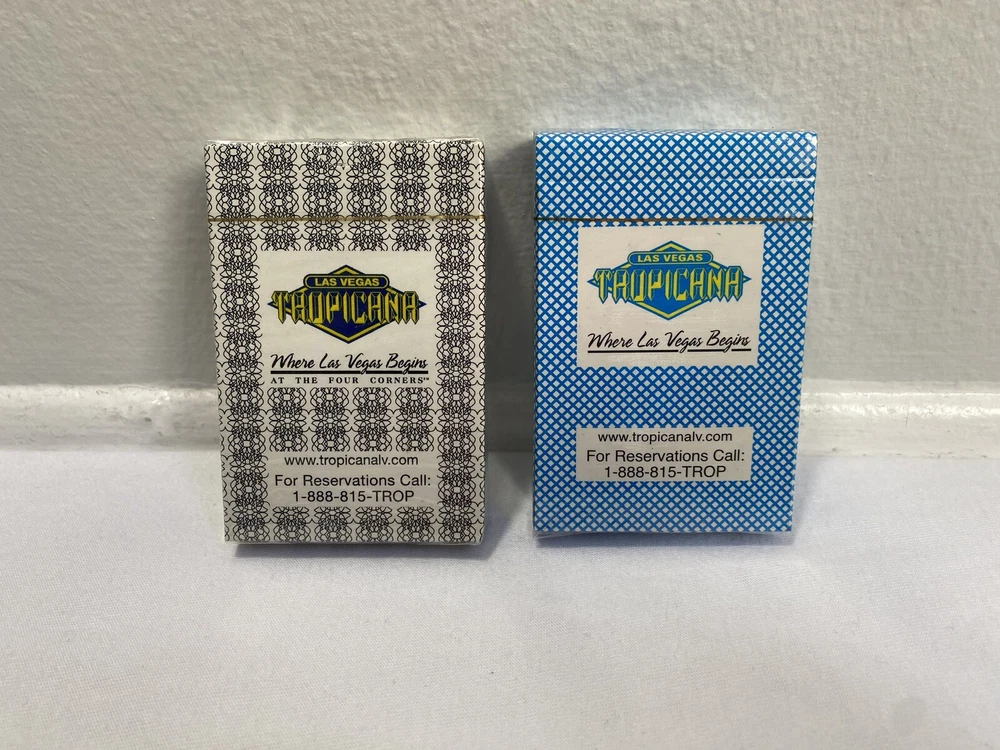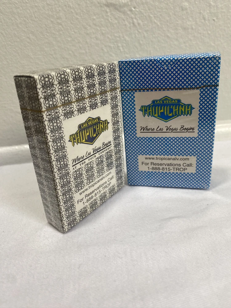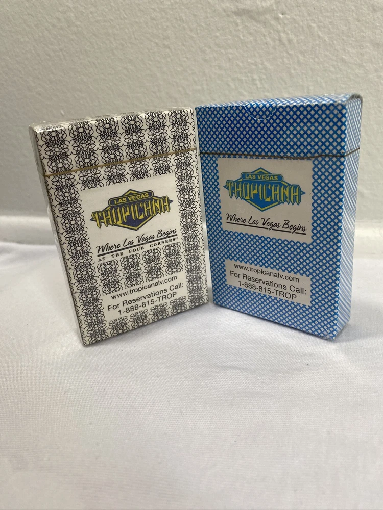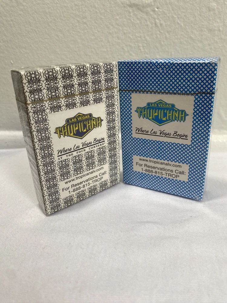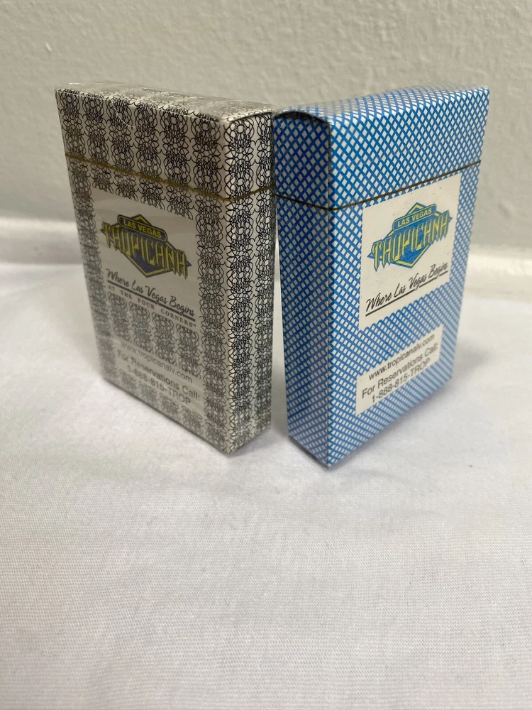 This lot includes two sealed decks of Las Vegas Tropicana playing cards, one in black and the other in blue. These poker decks are perfect for any avid gambler or collector of casino memorabilia. The cards feature the iconic Tropicana casino theme , Any questions about the item please send a message and I will get back to you as soon as I can Thank You !