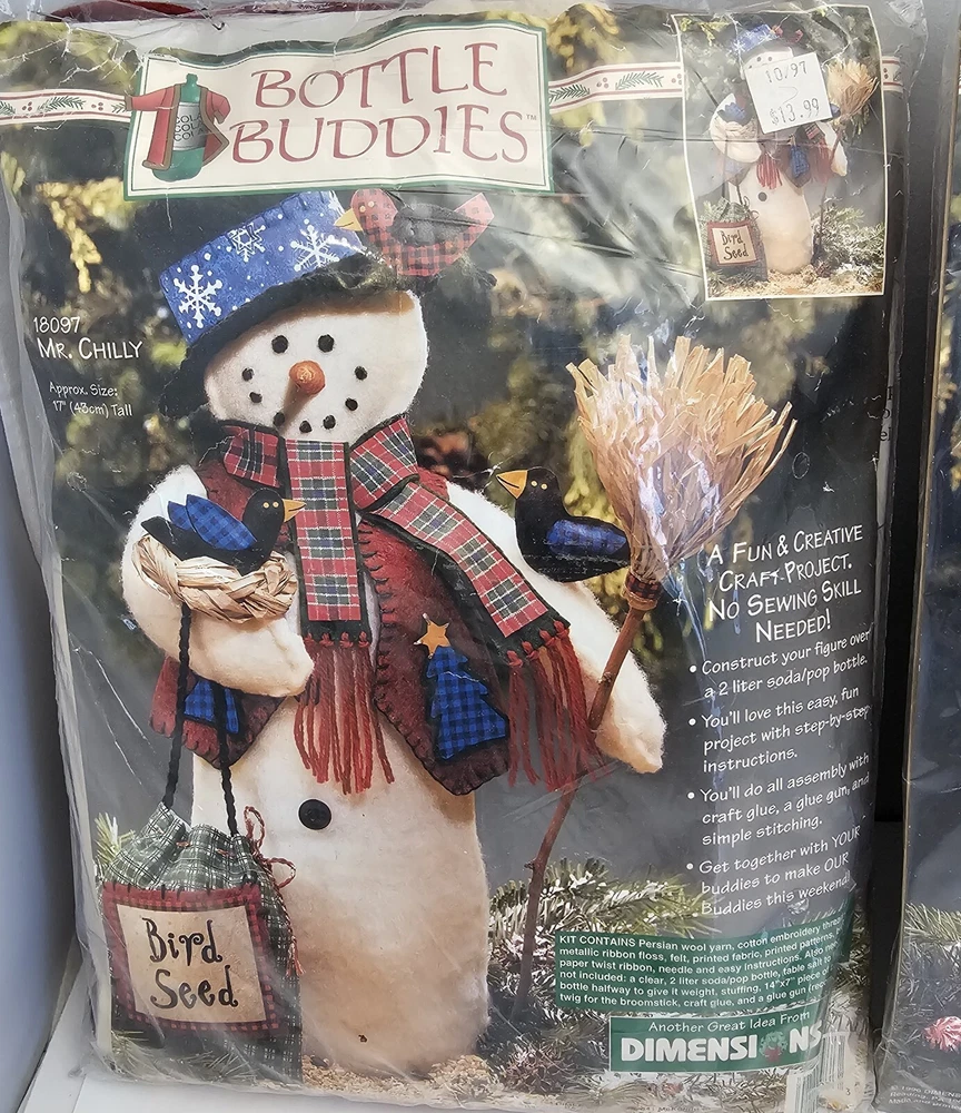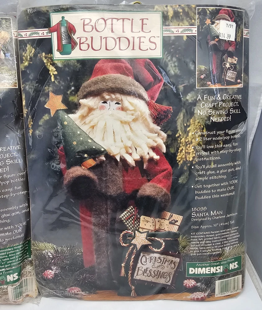 LOT of 2 - Vtg Dimensions BOTTLE BUDDIES, Mr Chilly #18097 & Santa Man #18098 - NEW. Condition is New in original packaging. Mr Chilly is being held closed with staples, contents unharmed. Please see all photos for item details. Shipping USPS.