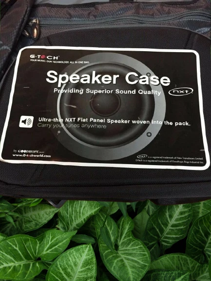 Travel Backpack Rucksack Laptop School Bag for Girl Women Men-NEW Speaker Backpack LAPTOP PROTECTOR MUSIC MESSENGER * Size: 16 ½"L x 11 ½"H x 5 ½"W * Colors: Black/Grey * Imprint: Front flap 9"W x 5 ½"H * Embroidery: Front flap 5 ½"W x 3 ½"H * Material: Nylon Made of duratex nylon mixed with 420D jacquard • This bag provides superior quality of sound w/ built-in ultra thin NXT speaker that connects to your laptop • A padded laptop compartment w/ zippered organizer pockets under the flap • Side mesh pocket for water bottle and side flap pocket secures your cell phone • Speaker requires 3AA batteries (not included)
