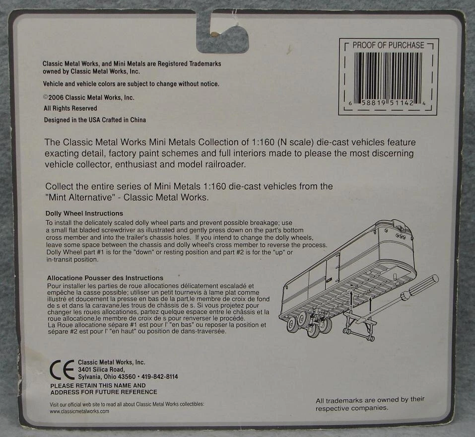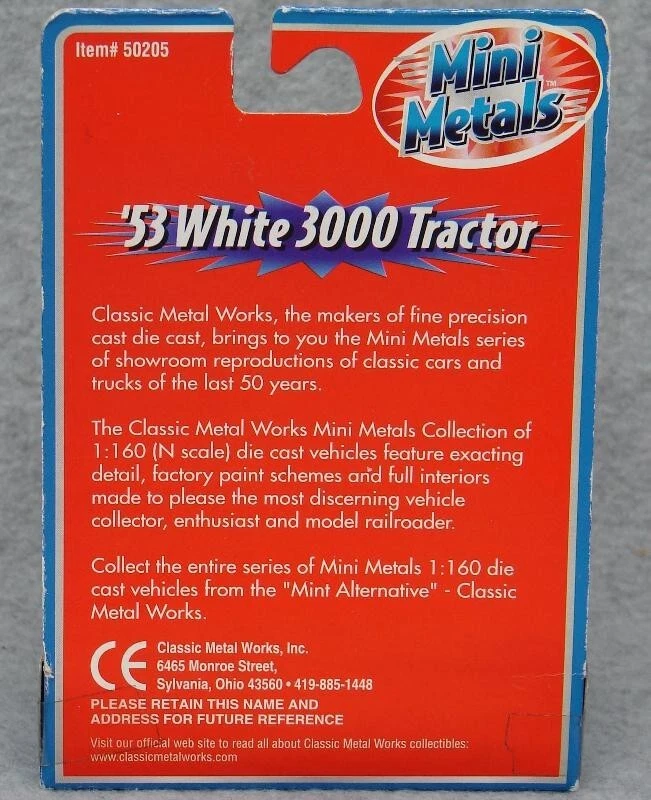 Type: Truck / Tractor-Trailer Assembly Status: Ready to Go/Pre-built Brand: Classic Metal Works / Mini Metals MPN: 51142, 50205, 51164, 51165 UPC: 658819511424 Scale: 1:160 Material: Diecast gtin13: 658819511424 Gauge: N