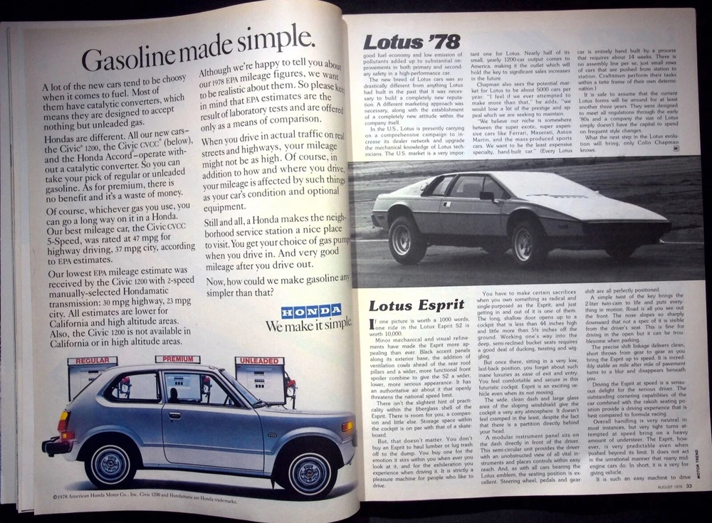 Take advantage of the magazine?s flat-rate shipping in the same package! Adding two or more to your shopping cart and checking out the flat rate will apply. Feel free to reach out if there are any problems, and I can always send you an invoice with the flat rate. LOTUS ESPRIT S2 - MOTOR TREND MAGAZINE, VOL. 30 NO. 8 AUG 1978 The magazine has minor wear; please look at the magazine photos. See the seller’s listings for full details and a description of any imperfections. We will be listing new magazines regularly; please follow our store. This magazine will be shipped in a vinyl bag to achieve the cheapest first-class rate due to the advertisement in the magazine; we can't ship media mail. MAKE AN OFFER by clicking the "MAKE OFFER" Button WE DO OFFER COMBINED SHIPPING ON ALL ORDERS. The magazine has minor visible wear . It may have very minimal identifying marks on the inside cover or outside. There are no missing pages, some creases, tears, or underlining/highlighting of text or writing in the margins. No matter what happens, If you need additional information on this product, feel free to contact us, and we will provide it ASAP.