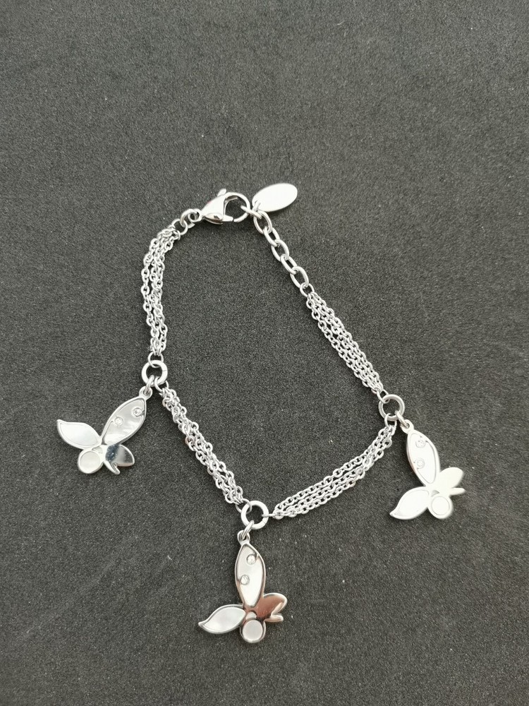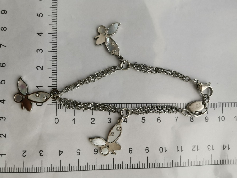 LOTUS Signed Silver MOP Charm Bracelet in Stainless Steel Brand New