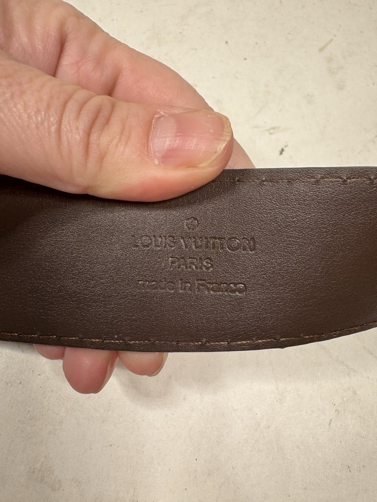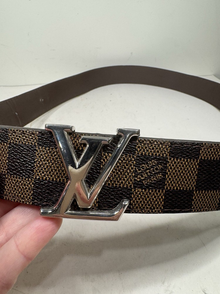 The Louis Vuitton Initial Buckle Ceinture Damier Men's Belt is a high-end accessory designed for men. This brown belt features the iconic Louis Vuitton branding and is crafted with a 50mm size. It is a stylish and sophisticated addition to any gentleman's wardrobe, perfect for completing a classic and luxurious look.
