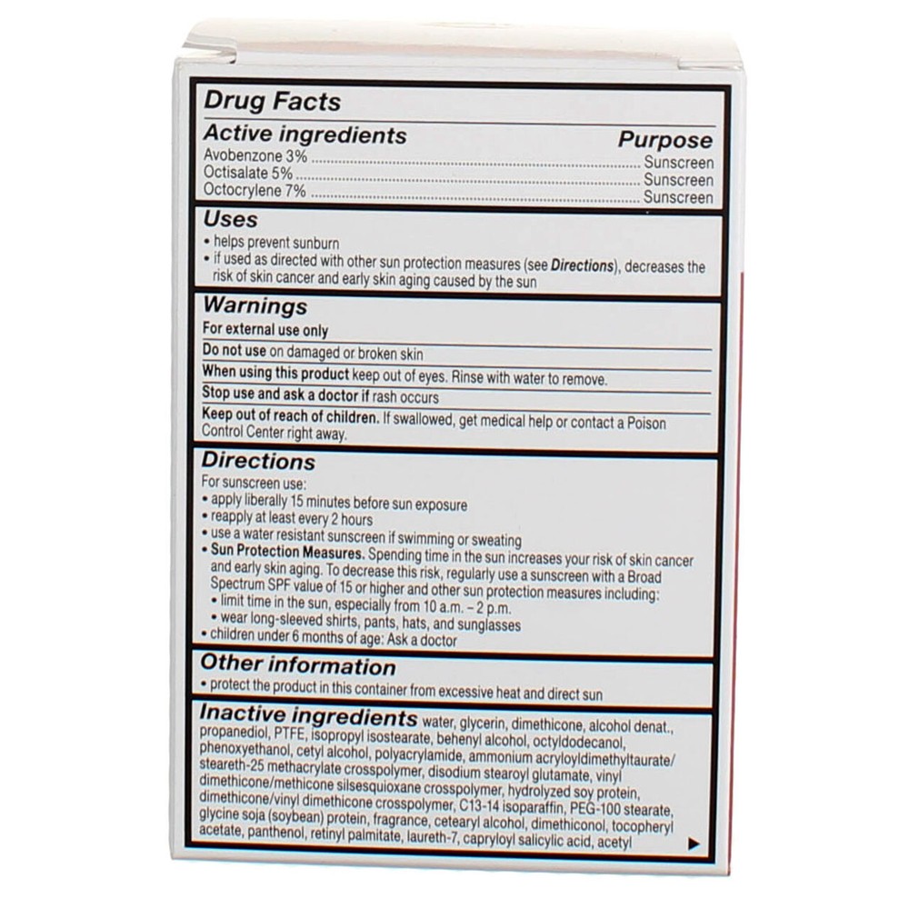 Product Description Experience advanced action against the signs of aging. Revitalift Anti-Wrinkle + Firming Cream SPF 25, a unique daily moisturizer with broad spectrum UVA/UVB SPF 25 sunscreen protection, delivers smoother, firmer skin in just 4 weeks. Fortified with Pro Retinol and Centella Asiatica, Revitalift Anti-Wrinkle + Firming works to increase cell turnover, visibly reduce wrinkles, firm skin, and provide 24-hour hydration. Packaging may vary. What you receive may not be what is reflected on site. Smoother, firmer skin in 4 weeks Formula with Pro Retinol and Centella Asiatica, also known as Tiger Grass Dermatologist Tested, Suitable for Sensitive Skin Contains SPF 25 Made in United States(of US and/or imported ingredients) For Sunscreen Use: Apply liberally 15 minutes before sun exposure. Reapply at least every 2 hours. Use a water resistant sunscreen if swimming or sweating. Sun protection measures. Spending time in the sun increases your risk of skin cancer and early skin aging. To decrease this risk, regularly use a sunscreen with a broad spectrum SPF value of 15 or higher and other sun protection measures including: limit time in the sun, especially from 10 a.m. - 2 p.m. wear long-sleeved shirts, pants, hats, and sunglasses. Children Under 6 Months of Age: Ask a doctor. Protect the product in this container from excessive heat and direct sun. Ingredients Active Ingredients: Avobenzone - 3 % (Sunscreen), Octisalate - 5 % (Sunscreen), Octocrylene - 7 % (Sunscreen) Inactive Ingredients: WATER, GLYCERIN, DIMETHICONE, ALCOHOL DENAT., PROPANEDIOL, PTFE, ISOPROPYL ISOSTEARATE, BEHENYL ALCOHOL, OCTYLDODECANOL, PHENOXYETHANOL, CETYL ALCOHOL, POLYACRYLAMIDE, AMMONIUM ACRYLOYLDIMETHYLTAURATE/STEARETH-25 METHACRYLATE CROSSPOLYMER, DISODIUM STEAROYL GLUTAMATE, VINYL DIMETHICONE/METHICONE SILSESQUIOXANE CROSSPOLYMER, HYDROLYZED SOY PROTEIN, DIMETHICONE/VINYL DIMETHICONE CROSSPOLYMER, C13-14 ISOPARAFFIN, PEG-100 STEARATE, GLYCINE SOJA (SOYBEAN) PROTEIN, FRAGRANCE, CETEARYL ALCOHOL, DIMETHICONOL, TOCOPHERYL ACETATE, PANTHENOL, RETINYL PALMITATE, LAURETH-7, CAPRYLOYL SALICYLIC ACID, ACETYL TRIFLUOROMETHYLPHENYL VALYGLYCINE, PENTAERYTHRITYL TETRA-DI-T-BUTYL HYDROXYHYDROCINNAMATE, DISODIUM EDTA, CARBOMER, CAPRYLYL GLYCOL, CETEARYL GLUCOSIDE, CALCIUM PCA, SODIUM COCOYL GLUTAMATE, PENTYLENE GLYCOL, ETHYLHEXYLGLYCERIN, SODIUM BENZOATE, BENZYL SALICYLATE, BENZYL ALCOHOL, YEAST EXTRACT, BENZYL BENZOATE, POTASSIUM SORBATE, LINALOOL, CENTELLA ASIATICA EXTRACT, HEXYL CINNAMAL, CITRONELLOL, LIMONENE, GERANIOL, ALPHA-ISOMETHYLIONONE, SALICYLOYL PHYTOSPHINGOSINE, TOCOPHEROL Product Description Experience advanced action against the signs of aging. Revitalift Anti-Wrinkle + Firming Cream SPF 25, a unique daily moisturizer with broad spectrum UVA/UVB SPF 25 sunscreen protection, delivers smoother, firmer skin in just 4 weeks. Fortified with Pro Retinol and Centella Asiatica, Revitalift Anti-Wrinkle + Firming works to increase cell turnover, visibly reduce wrinkles, firm skin, and provide 24-hour hydration. Packaging may vary. What you receive may not be what is reflected on site. Smoother, firmer skin in 4 weeks Formula with Pro Retinol and Centella Asiatica, also known as Tiger Grass Dermatologist Tested, Suitable for Sensitive Skin Contains SPF 25 Made in United States(of US and/or imported ingredients) For Sunscreen Use: Apply liberally 15 minutes before sun exposure. Reapply at least every 2 hours. Use a water resistant sunscreen if swimming or sweating. Sun protection measures. Spending time in the sun increases your risk of skin cancer and early skin aging. To decrease this risk, regularly use a sunscreen with a broad spectrum SPF value of 15 or higher and other sun protection measures including: limit time in the sun, especially from 10 a.m. - 2 p.m. wear long-sleeved shirts, pants, hats, and sunglasses. Children Under 6 Months of Age: Ask a doctor. Protect the product in this container from excessive heat and direct sun. Ingredients Active Ingredients: Avobenzone - 3 % (Sunscreen), Octisalate - 5 % (Sunscreen), Octocrylene - 7 % (Sunscreen) Inactive Ingredients: WATER, GLYCERIN, DIMETHICONE, ALCOHOL DENAT., PROPANEDIOL, PTFE, ISOPROPYL ISOSTEARATE, BEHENYL ALCOHOL, OCTYLDODECANOL, PHENOXYETHANOL, CETYL ALCOHOL, POLYACRYLAMIDE, AMMONIUM ACRYLOYLDIMETHYLTAURATE/STEARETH-25 METHACRYLATE CROSSPOLYMER, DISODIUM STEAROYL GLUTAMATE, VINYL DIMETHICONE/METHICONE SILSESQUIOXANE CROSSPOLYMER, HYDROLYZED SOY PROTEIN, DIMETHICONE/VINYL DIMETHICONE CROSSPOLYMER, C13-14 ISOPARAFFIN, PEG-100 STEARATE, GLYCINE SOJA (SOYBEAN) PROTEIN, FRAGRANCE, CETEARYL ALCOHOL, DIMETHICONOL, TOCOPHERYL ACETATE, PANTHENOL, RETINYL PALMITATE, LAURETH-7, CAPRYLOYL SALICYLIC ACID, ACETYL TRIFLUOROMETHYLPHENYL VALYGLYCINE, PENTAERYTHRITYL TETRA-DI-T-BUTYL HYDROXYHYDROCINNAMATE, DISODIUM EDTA, CARBOMER, CAPRYLYL GLYCOL, CETEARYL GLUCOSIDE, CALCIUM PCA, SODIUM COCOYL GLUTAMATE, PENTYLENE GLYCOL, ETHYLHEXYLGLYCERIN, SODIUM BENZOATE, BENZYL SALICYLATE, BENZYL ALCOHOL, YEAST EXTRACT, BENZYL BENZOATE, POTASSIUM SORBATE, LINALOOL, CENTELLA ASIATICA EXTRACT, HEXYL CINNAMAL, CITRONELLOL, LIMONENE, GERANIOL, ALPHA-ISOMETHYLIONONE, SALICYLOYL PHYTOSPHINGOSINE, TOCOPHEROL Warnings For external use only. Do not use on damaged or broken skin. When using this product keep out of eyes; rinse with water to remove. Stop use and ask a doctor if if rash occurs. Keep out of reach of children. If swallowed, get medical help or contact a Poison Control Center right away. Disclaimer The product descriptions and instructions provided by vitabox.com are for informational purposes only and are qualified in their entirety by the information available from manufacturers of the products. You should carefully read all product packaging, and contact the manufacturer with any questions before using a product. While we endeavor to ensure that product descriptions are current, manufacturers sometimes change their products. We are not liable for inaccuracies or misstat