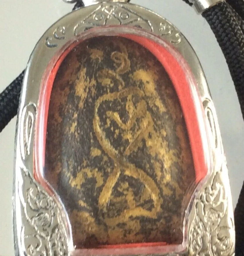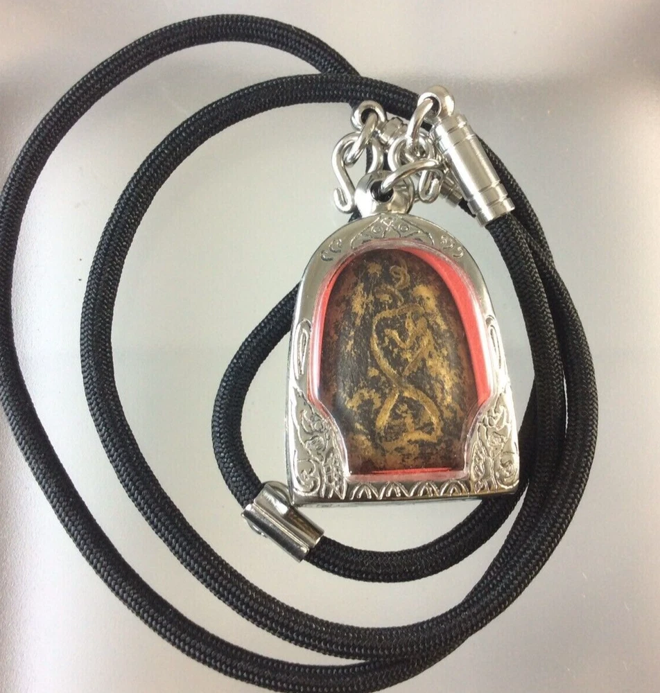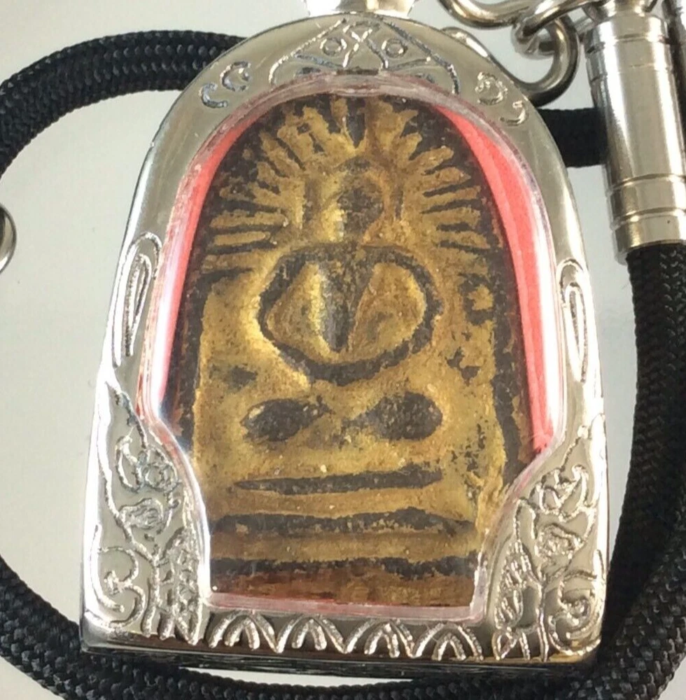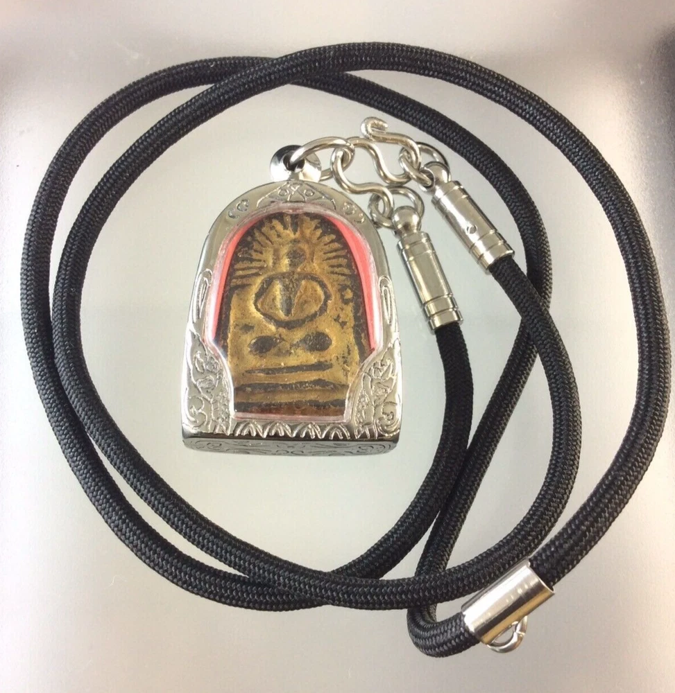 Age: Antique / Vintage Blessings: Protection, Prosperity, Good Luck, Health Spiritual Power: Strong Protective Charm Special Features: Handcrafted, Sacred Incantations Necklace: Black Cord, Length approx. 24 inches Item: LP Boon Amulet Size of Amulet: Approx. 2 x 3 cm Temple: Wat Klang Bang Kaew Item no.: # Y4 Rarity: Rare, Collectible Color: Brown Suitable For: Collectors, Devotees, Spiritual Practitioners Original/Reproduction: Vintage Original Primary Material: Sacred Powder / Metal Casing Type: Thai Buddha Amulet Monk: Luang Pu Boon (LP Boon) Origin: Thailand Region of Origin: Southeast Asia