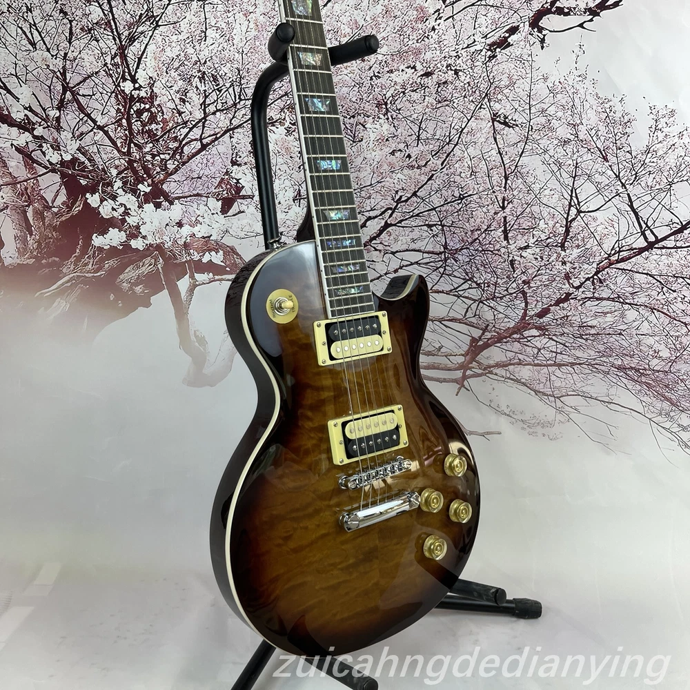 This limited time offer electric guitar features a solid brown quilted maple top and a mahogany body. The guitar is right-handed and has a 4/4 size. The neck is made of mahogany and the fretboard is made of rosewood. The guitar has 22 frets and a 6-string configuration. The set includes a cable and the guitar is perfect for professional performance. The model year is 2024 and the guitar is a custom model. The region of manufacture is China. This electric guitar is in stock in the US warehouse and can be shipped immediately after placing an order. Product quality assurance, including after-sales service. Please feel free to contact us if you have any questions.