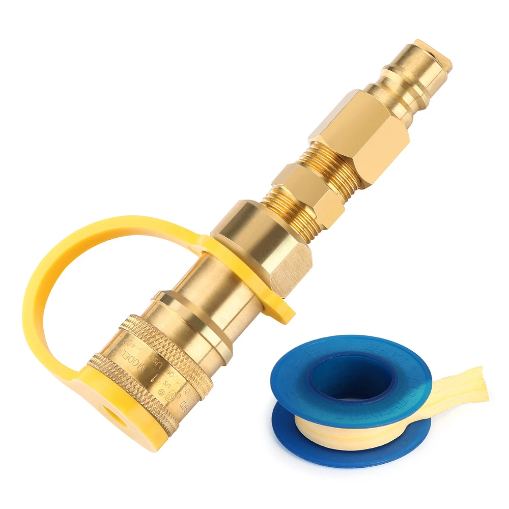3/8 Inch Natural Gas Quick Connect Fittings , LP Gas Propane Hose Quick Disconnect Kit, 3/8'' Male NPT Thread x 3/8'' Female NPT Thread Material: 100% solid brass construction makes it corrosion resistant. The center hex nut of this quick connect adapter provides solid grip while installing, provide safe connection and leak prevention for you. Application: The propane quick connector adapter can be applied in low-pressure natural gas or propane systems, also suitable for other occasions, such as motorhomes, trailers, ships, gas grills, etc. Safety: Add a convenient connect / disconnect method, automatically shuts off flow when you disconnect the hose. Easy to install: No tools required, the threads are tightly connected. We provide a thread seal tape. Bring convenience for you to insall it. Specification: 3/8" Male NPT Thread x 3/8" Female NPT Thread; Attention: Do not suitable for 3/8'' flare thread hose, if you want to use this fitting on a 3/8'' female flare hose, you need to buy another fitting that can convert 3/8'' NPT Thread to 3/8'' Flare Thread. Features and further details WADEO 3/8 Inch Natural Gas Quick Connect Fittings, LP Gas Propane Hose Quick Disconnect Kit Material : High Quality Brass、PTFE、PP Weight : 230g/0.51LB Specification : 3/8" Male Pipe Thread x 3/8" Female Pipe Thread. Installation : Two different connecting way and be able to connects straight to the grill by this quick connect adapter. Certificate : CSA Contact us We can be contacted at any time through eBay messages if you have any questions, comments or product requests. We will respond to you within 24 hours and do our best to help you out! We encourage our customers to contact us with any questions or concerns! We'd like to be sure you are completely satisfied with your purchase. Free Returns If you need to return the item you purchased, we will provide you with a shipping label. Free Shipping All products in our store are shipped from the US warehouse and you don't need to pay any shipping fees!