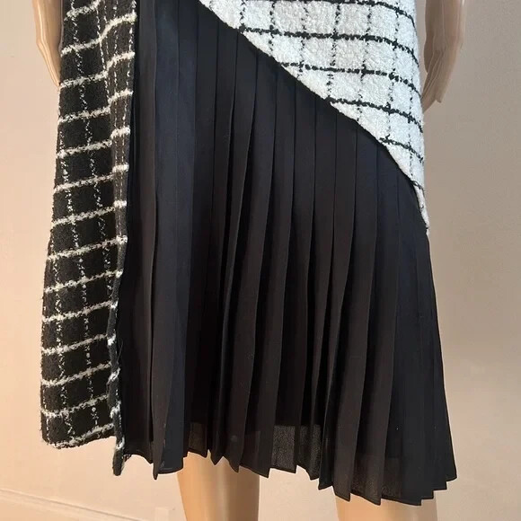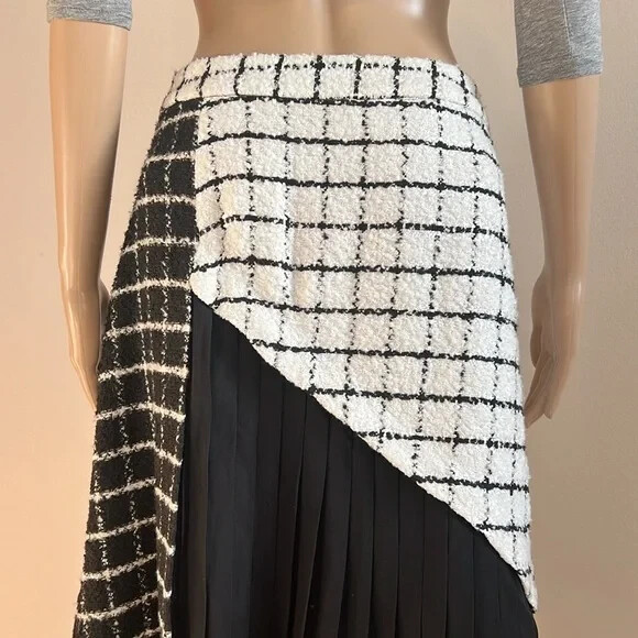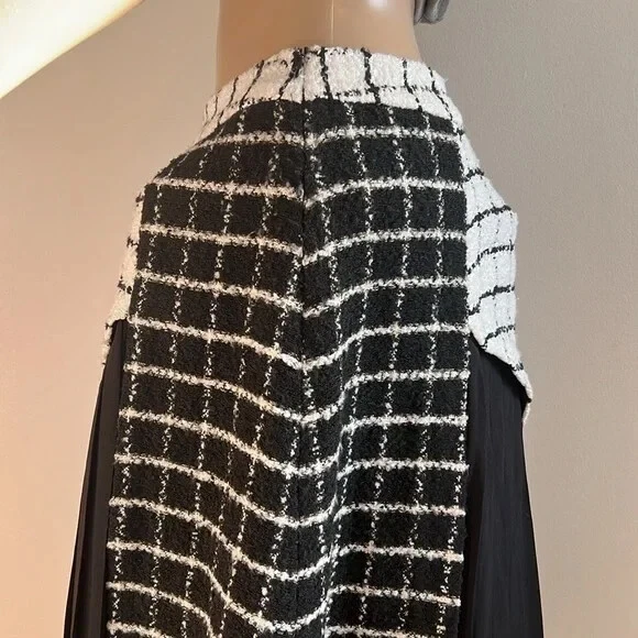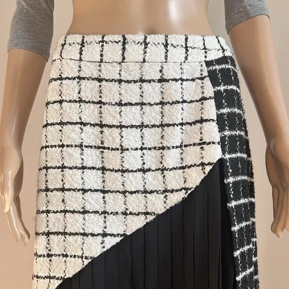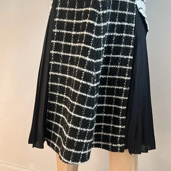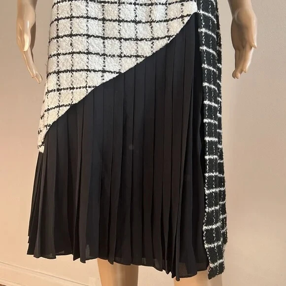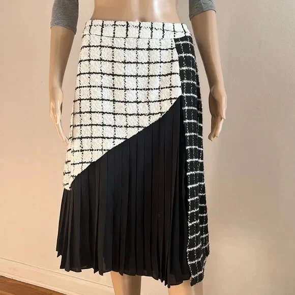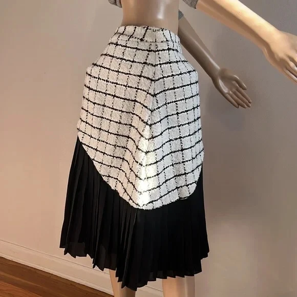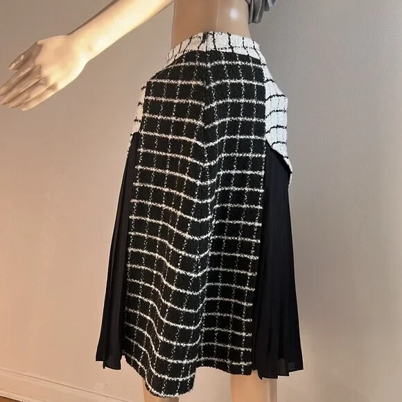 Type: Skirt Fabric Type: Tweed Department: Women Accents: Pleated accents Style: A-LINE OR FULL Skirt Length: 26 Color: BLACK WHITE Closure: Side zip closure Size: 14 Size Type: Regular Brand: LR By Legally RED Features: Fully lined