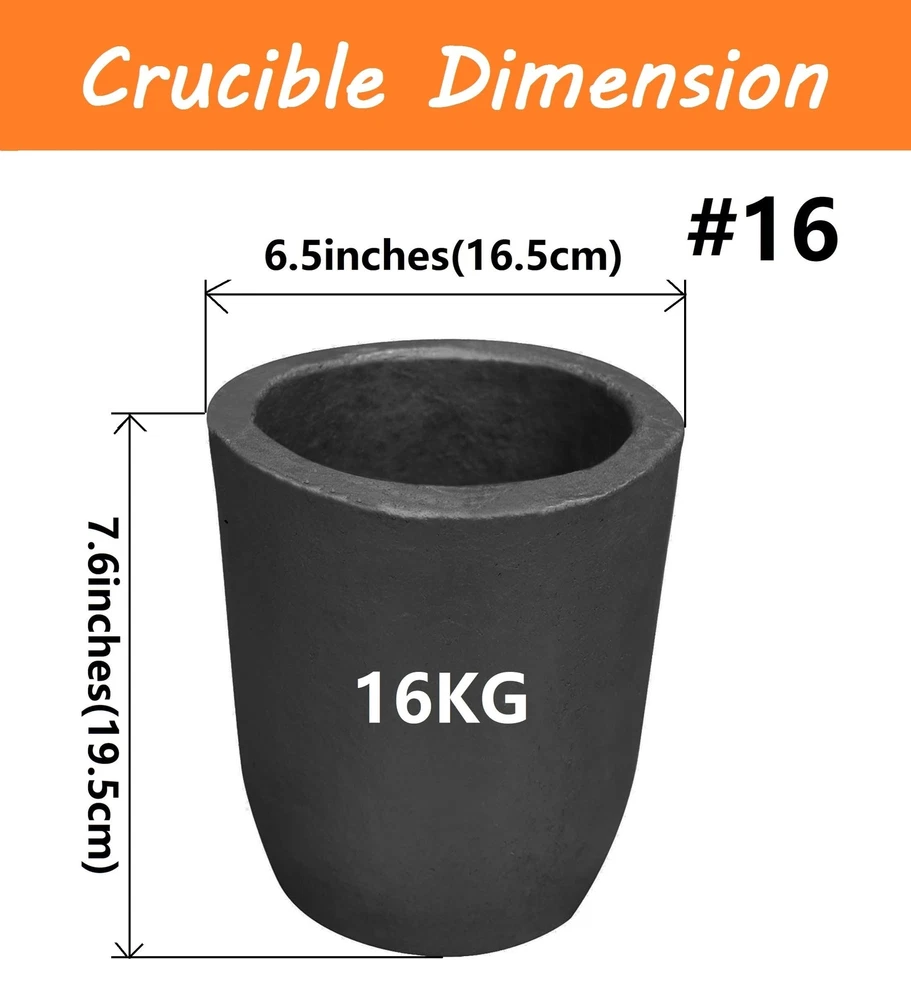 LSMIITTH 35lbs/16KG Clay Graphite Crucible for Metal Melting Casting Crucible Refining Aluminum Silver Copper Brass Gold - #16 Crucible Product Details Size: #16 Crucible Brand: LSMIITTH MPN: GG-16 UPC: Does not apply EAN: Does not apply Product Dimensions: 6.5 x 6.5 x 7.87 inches Item model number: GG-16 Item Weight: 7.02 pounds Manufacturer: LSMIITTH Country of Origin: China Date First Available: April 26, 2023 16KG Crucible Size: 6.5''(16.5cm)(diameter) x 7.6''(19.5cm)(height). Large Capacity: 16KG casting crucible could melt 16KG copper, 30KG gold, 4.8KG aluminum, 19KG silver. High Temperature Resistance: Aluminum melting crucible can withstand temperatures up to 1800C(3300F). Premium Material: The large crucible made of graphite, suit for furnace, metal melting. We suggest preheating the empty crucible up to 500C and holding about 5 minutes before casting. Wide Application: LSMIITTH foundry crucible is an excellent casting tool for melting Gold, Silver, Copper, Brass, Aluminum, Glass and more.