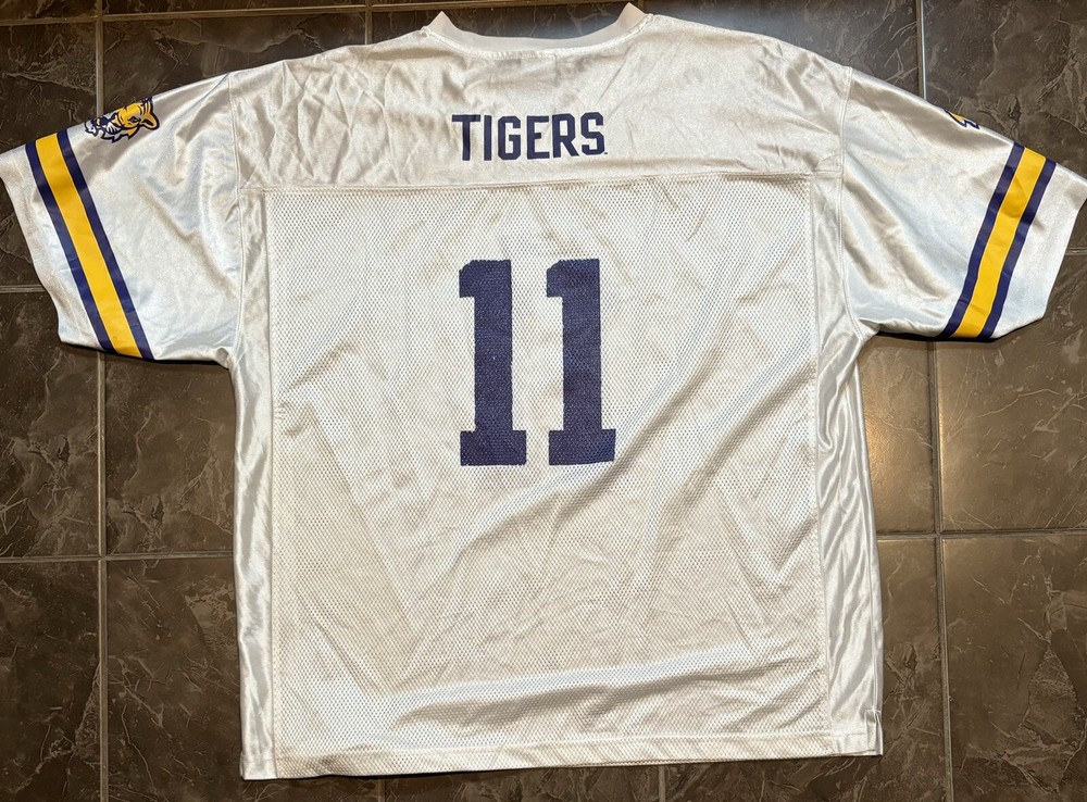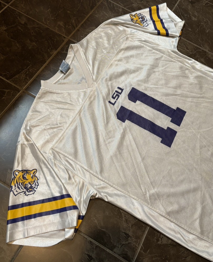 This LSU Tigers jersey is in excellent condition—clean, no flaws, and fits true to size. The stitching is solid, and the colors are vibrant. Perfect for game day or collecting. Quick responses from the seller, smooth transaction. Highly recommend for any Tigers fan!