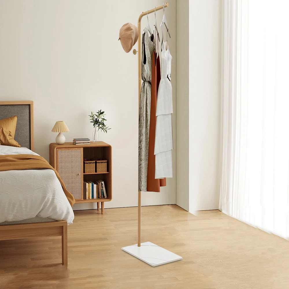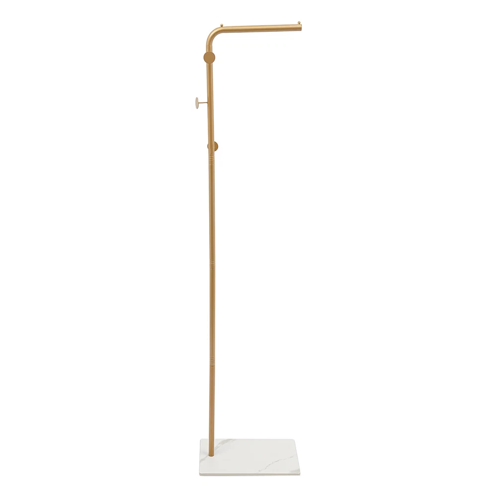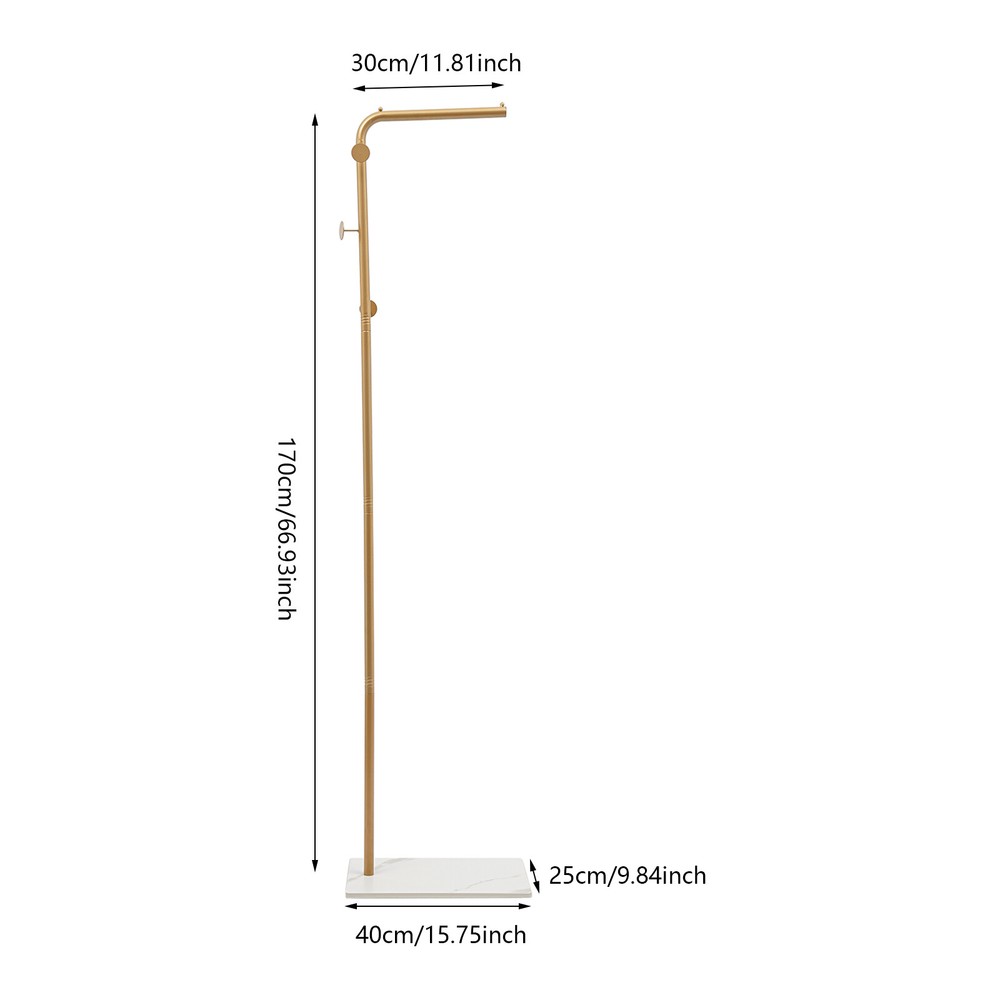 L-shape Coat Rack Hat Bag Stand Tree 3 Hooks Clothes Hanger Umbrella Holder Rack Description Are you still worried about finding a place to hang your clothes? Our coat rack is designed for hanging clothes, bags, scarves and other items in an organized manner. It is made of high-quality iron and slate materials with a high-temperature baking paint process , which is not only beautiful but also durable. It can effectively help you hang and organize all kinds of clothes and solve storage problems in small homes. Come and bring it home! Key Features Sturdy and Durable: This product is made of high-quality iron and slate materials with a high-temperature baking paint process, which is sturdy and wear-resistant , and has a long service life. Fashionable Style: The sleek look, classic gold color and simple lines make for a stylish and elegant product that will go well with your existing furniture and add a splash of color to your room. Strong Load-bearing Capacity : The rectangular base and the strong connection between the parts make this product able to withstand a heavy load of about 77.16lbs , so you can use it to store your daily clothes with confidence. Large Capacity: The 3 left and right distributed hooks add hierarchy and avoid stacking of clothes, making it easy for you to access coats, handbags, scarves and jackets (not included). The top shelf allows you to hang your clothes neatly (not included), and the small rounded ends won't let the hangers slide off. The bottom rock base holds your shoes (not included) for more organized storage. Suitable Height: It is high enough (66.93in) to prevent most clothes from touching the floor and getting dirty, so you can hang your pants, long skirts, coats, etc.(not included) with confidence. Easy Installation: The simple structure allows even novice installers to install it quickly and accurately. Effortless Cleaning: Thanks to the smooth surface, simple structure, and open design, you can easily wipe off the dirt on it with a soft cloth. Ideal Gift: With a beautiful appearance and good performance, it would be a wonderful surprise for your wife, mother, daughter, friend, or loved ones. Protective Package: To prevent damage to the product due to bumps in transit, we place foam to protect the product as much as possible. Details 3 Round Head Hooks: They are not only aesthetically pleasing but also prevent clothes from falling off and care for your clothes and hands. Sturdy Base: The rectangular slate base measuring 15.75*9.84in can well stabilize this product and prevent it from tipping over. 9 Foam Pads: They can be taped to the bottom of the base to protect the floor from scratches. Smooth Edge: The rounded and smooth edges not only add to the aesthetics of the product but also improve the safety of use. Application It can be used in hallways, bedrooms, living rooms, bathrooms, entryways, foyers, study rooms, children's rooms, laundry rooms, offices, clothing stores, apartments, hotels, dormitories, etc. It can be used to hang coats, scarves, hats, school bags, handbags, purses, suits, garments and place shoes etc. Specifications Color: Gold, White Style: Modern Material: Iron, Slate Shape: L-shape Process: High-temperature Baking Paint Assembly Required: Yes Mounting Type: Free Standing Total Load Capacity: About 35kg/77.16lbs Number of Hooks: 3 Gross Weight: 3.75kg/8.27lbs Net Weight: 3.5kg/7.72lbs Product Height: 170cm/66.93in Rod Length: 30cm/11.81in Base Size(L*W): 40*25cm/15.75*9.84in Package Size: 51*40*12cm/20.08*15.75*4.72in Package Included 1* Coat Rack 9* Foam Pads All Accessories for Assembly Notes Please note that this product does not include any clothes. Please do not leave the product in the sun or a humid place for a long time, otherwise, it will reduce the service life of the product. Please allow the slight color difference caused by the shooting light and 1-3cm error due to manual measurement, and make sure you do not mind before you order. Payment Delivery details Terms of sales About us Contact us Payment We accept ebay payment 。 Fees such as import duties, taxes are not included in the item price or shipping costs. These charges are the buyer's responsibility. Delivery details Shipping: 2-9 working days to: USA Terms of sales We maintain high standards of excellence and strive for hundred percent customer satisfaction. Feedback is very important to us. We hope that you contact us immediately before you give neutral or negative feedback, so that we can address your concerns. It is impossible to address issues if we do not know about them! About us Your satis faction is our ultimate goal. We work hard to earn your trust and future business. Our certified technicians have tested each item before shipping. The unit comes with 1 year limited warranty on all manufacturing defects. a) If you receive a defective item, you may return it or ask for a discount. Please contact us within 14 days after you receive the package. b) What you returned must be intact and in its original packaging as re? u. Customer is responsible for shipping costs of the returned item. c) We will cover the cost of shipping back t with the shipping rate indicated in the registration page. We will send you a new unit or refund the full payment you paid. Thank you. Contact us Business Hour Business Hour: Monday To Friday: 8:30 AM to 5:00 PM (Beijing China time) Due to time zones, our reply to your questions may not be immediately. But within above working time, we will reply your email within 24 hours. If it's non-workdays, please kindly be patient and wait till Monday. Please contact us with ebay message. Please feel free to contact us if you have any questions. Monday To Friday: 8:30 AM to 5:00 PM (Beijing China time) Due to time zones, our reply to your questions may not be immediately. But within above working time, we will reply your email within 24 hours. If it's non-workdays, please kindly be patient and wait till Monday. Please contact us with ebay m