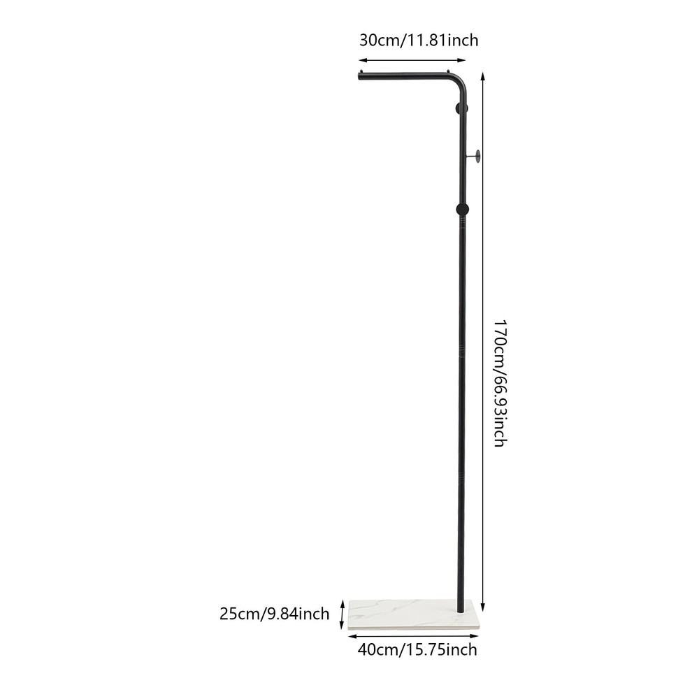 L-Shape Metal Coat Rack Hat Bag Stand Tree Clothes Hanger Umbrella Holder Rack Description Are you still worried about finding a place to hang your clothes? Our coat rack is designed for hanging clothes, bags, scarves and other items in an organized manner. It is made of high-quality iron and slate materials with a high-temperature baking paint process , which is not only beautiful but also durable. It can effectively help you hang and organize all kinds of clothes and solve storage problems in small homes. Come and bring it home! Key Features Sturdy and Durable: This product is made of high-quality iron and slate materials with a high-temperature baking paint process, which is sturdy and wear-resistant , and has a long service life. Fashionable Style: The sleek look, classic gold color and simple lines make for a stylish and elegant product that will go well with your existing furniture and add a splash of color to your room. Strong Load-bearing Capacity : The rectangular base and the strong connection between the parts make this product able to withstand a heavy load of about 77.16lbs , so you can use it to store your daily clothes with confidence. Large Capacity: The 3 left and right distributed hooks add hierarchy and avoid stacking of clothes, making it easy for you to access coats, handbags, scarves and jackets (not included). The top shelf allows you to hang your clothes neatly (not included), and the small rounded ends won't let the hangers slide off. The bottom rock base holds your shoes (not included) for more organized storage. Suitable Height: It is high enough (66.93in) to prevent most clothes from touching the floor and getting dirty, so you can hang your pants, long skirts, coats, etc.(not included) with confidence. Easy Installation: The simple structure allows even novice installers to install it quickly and accurately. Effortless Cleaning: Thanks to the smooth surface, simple structure, and open design, you can easily wipe off the dirt on it with a soft cloth. Ideal Gift: With a beautiful appearance and good performance, it would be a wonderful surprise for your wife, mother, daughter, friend, or loved ones. Protective Package: To prevent damage to the product due to bumps in transit, we place foam to protect the product as much as possible. Details 3 Round Head Hooks: They are not only aesthetically pleasing but also prevent clothes from falling off and care for your clothes and hands. Sturdy Base: The rectangular slate base measuring 15.75*9.84in can well stabilize this product and prevent it from tipping over. 9 Foam Pads: They can be taped to the bottom of the base to protect the floor from scratches. Smooth Edge: The rounded and smooth edges not only add to the aesthetics of the product but also improve the safety of use. Application It can be used in hallways, bedrooms, living rooms, bathrooms, entryways, foyers, study rooms, children's rooms, laundry rooms, offices, clothing stores, apartments, hotels, dormitories, etc. It can be used to hang coats, scarves, hats, school bags, handbags, purses, suits, garments and place shoes etc. Specifications Color: Black, White Style: Modern Material: Iron, Slate Shape: L-shape Process: High-temperature Baking Paint Assembly Required: Yes Mounting Type: Free Standing Total Load Capacity: About 35kg/77.16lbs Number of Hooks: 3 Gross Weight: 3.75kg/8.27lbs Net Weight: 3.5kg/7.72lbs Product Height: 170cm/66.93in Rod Length: 30cm/11.81in Base Size(L*W): 40*25cm/15.75*9.84in Package Size: 51*40*12cm/20.08*15.75*4.72in Package Included 1* Coat Rack 9* Foam Pads All Accessories for Assembly Notes Please note that this product does not include any clothes. Please do not leave the product in the sun or a humid place for a long time, otherwise, it will reduce the service life of the product. Please allow the slight color difference caused by the shooting light and 1-3cm error due to manual measurement, and make sure you do not mind before you order. Feature3 Stable characteristic,high reliability Brand Unbranded Type Coat & Hat Racks Material Iron, Slate Mounting Free Standing Number of Hooks 3 Color Black, White Shape L-shape Process High-temperature Baking Paint Assembly Required Yes Total Load Capacity About 35kg/77.16lbs Gross Weight 3.75kg/8.27lbs Net Weight 3.5kg/7.72lbs Product Height 170cm/66.93in Rod Length 30cm/11.81in Base Size(L*W) 40*25cm/15.75*9.84in Package Size 51*40*12cm/20.08*15.75*4.72in On Aug 11, 2025 at 21:57:34 PDT, seller added the following information: