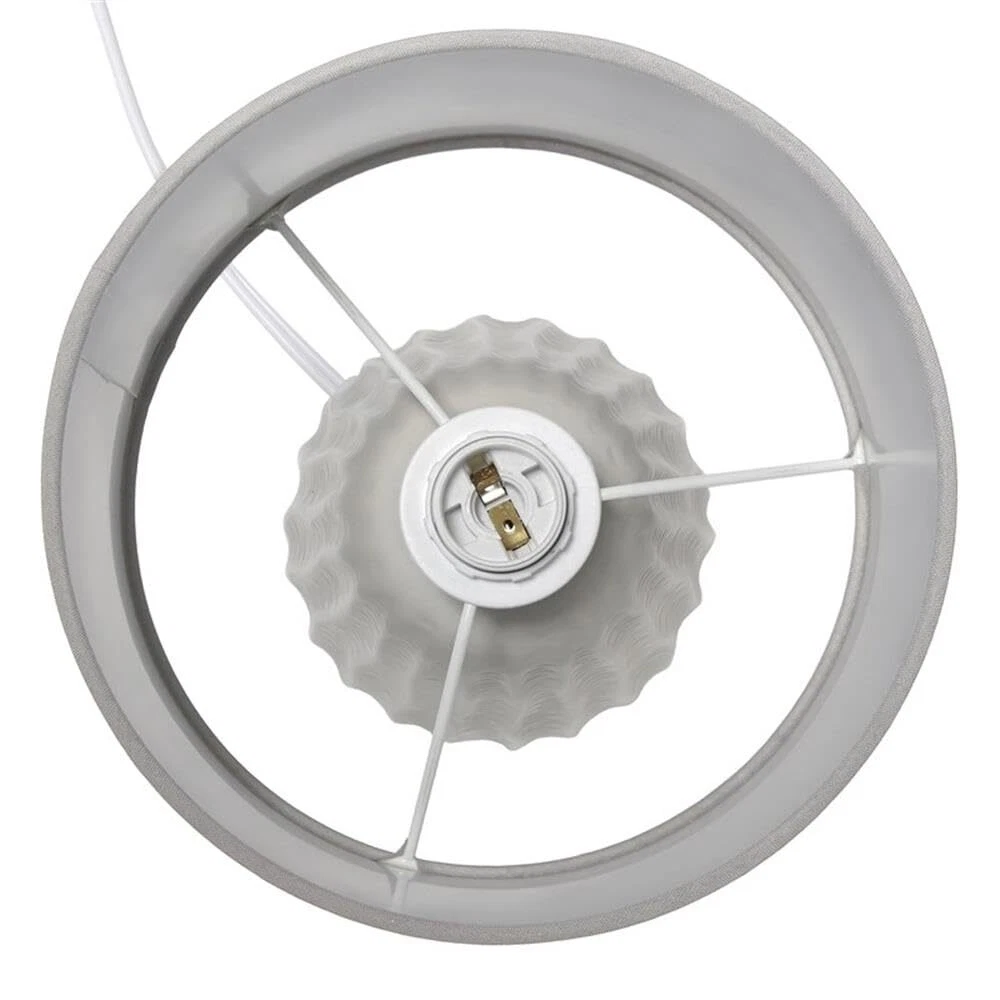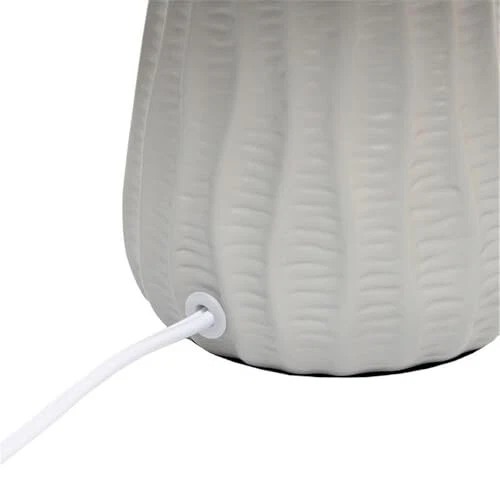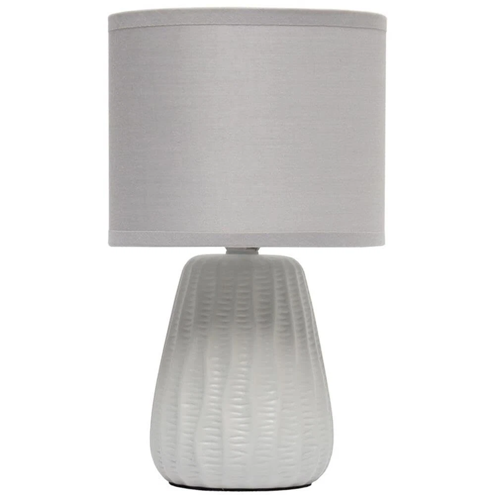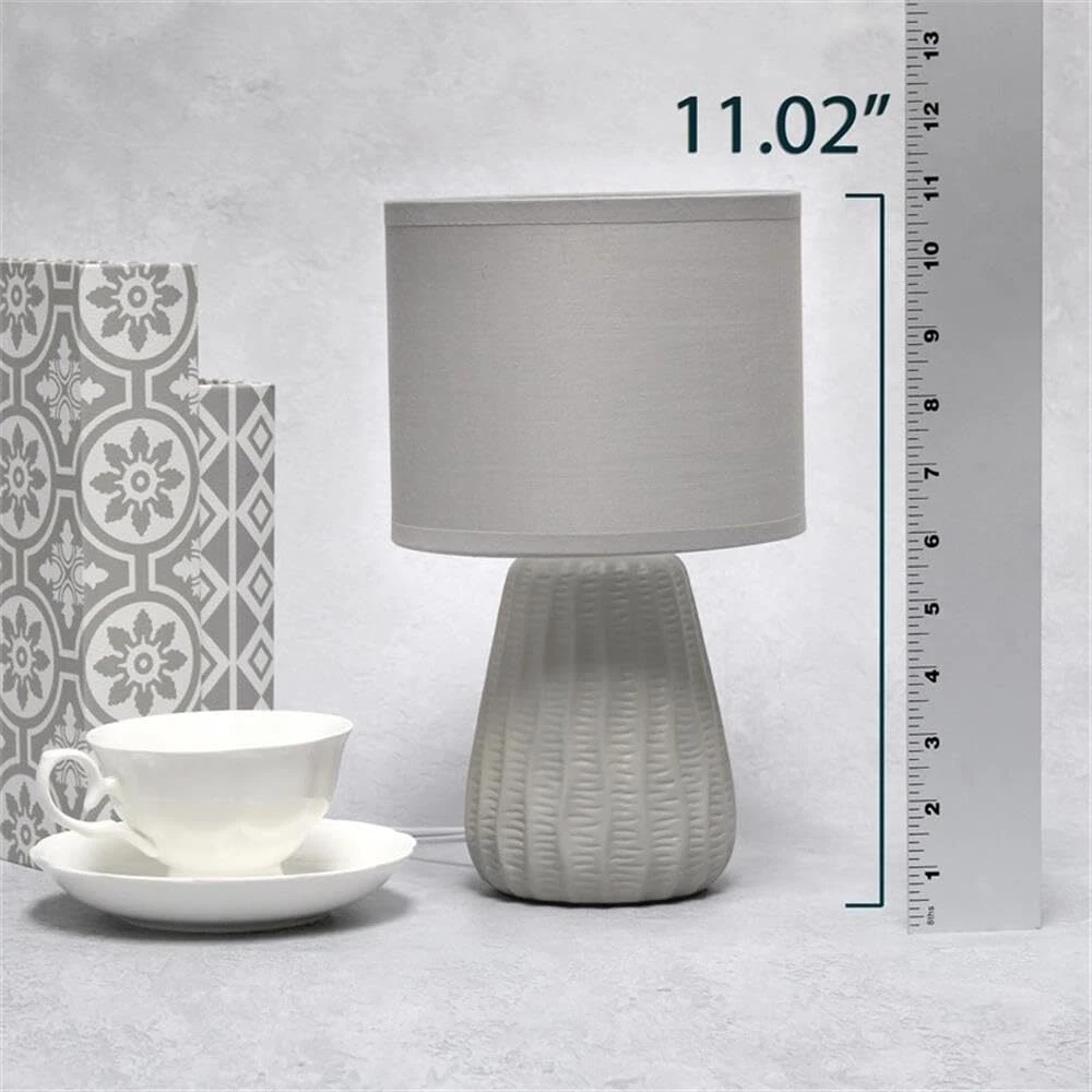 A modern feel to a traditionally styled lamp! This mini ceramic table lamp is textured throughout the painted base, which is available in a number of pastel color options, all with a matching fabric drum shade. At just under a foot tall, this lamp is the perfect accent piece to your living room, bedroom, or 's room! MODERN DESIGN: A mini lamp made of ceramic in a pastel color of your choice has a woven like texture throughout its base and includes a matching drum fabric shade. Perfect lamp to accent your home or office space! ACCESSIBLE SWITCH: An easily accessible gear (rotary) switch is located on the cord of this table lamp to allow a quick and easy on/off function as needed. Lamp is also equipped with a 5 foot white plug in cord rooted at the base. PRODUCT SIZE: Overall product size is L: 6.5" x W: 6.5"x H: 11.02" and weighs 1.1 lbs. The shade of this lamp measures Dia: 6.5" x H: 5.25". PRODUCT IS A MINI LAMP. ASSEMBLY & USE: Product ships assembled and will only require you to secure the lamp shade to the base using the provided socket nut prior to use. BULB REQUIREMENT SOLD SEPARATELY: This table lamp uses 1 x 40 watt equivalent type B10 E12 candelabra base bulb, which is not included in your purchase but can be easily found online or your local hardware .