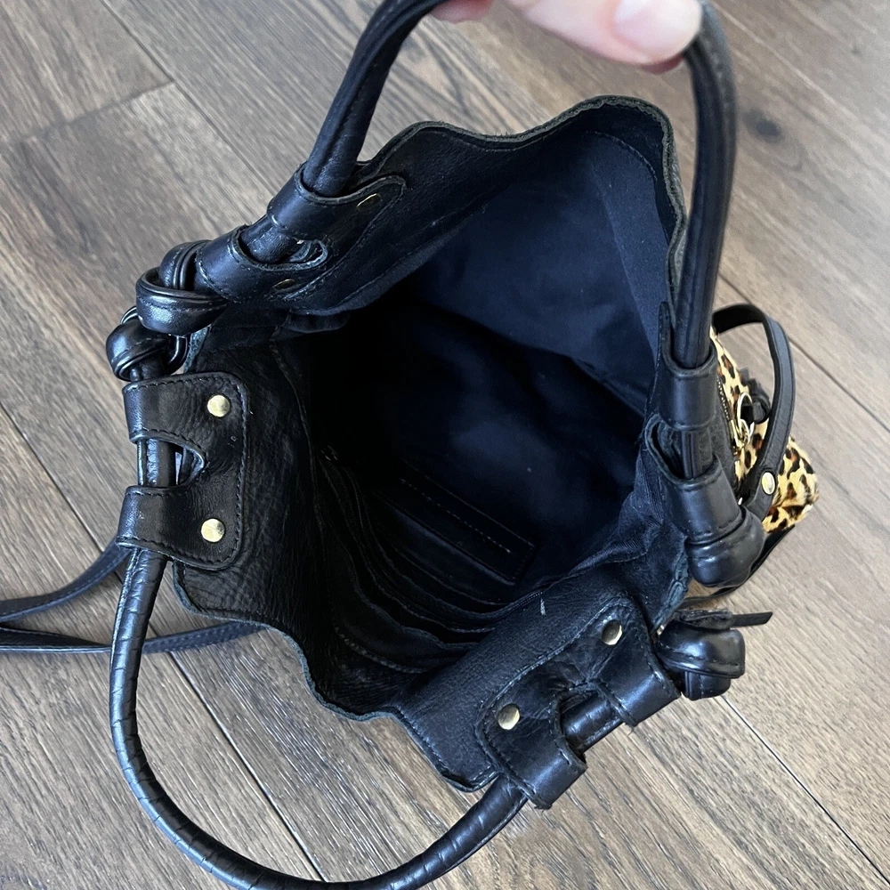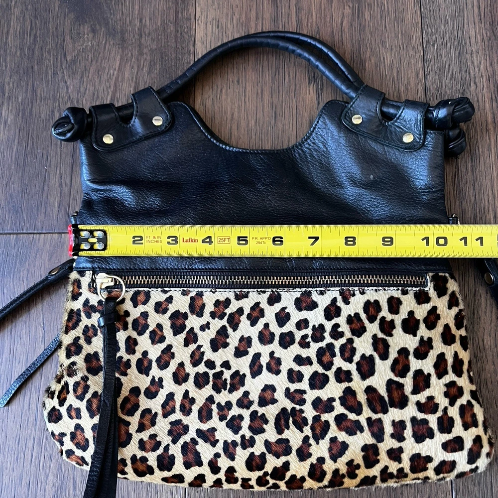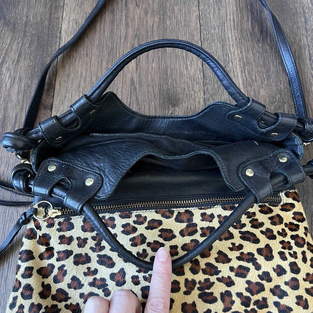 Luciana Verde Good preowned condition. There is rubbing to corners, the calf hair has damage. Hard to see as the leather still has the design. Please see pics. Otherwise in great shape. Handles and hardware in tact. multi carry options: removable crossbody strap, can foldover for use as clutch