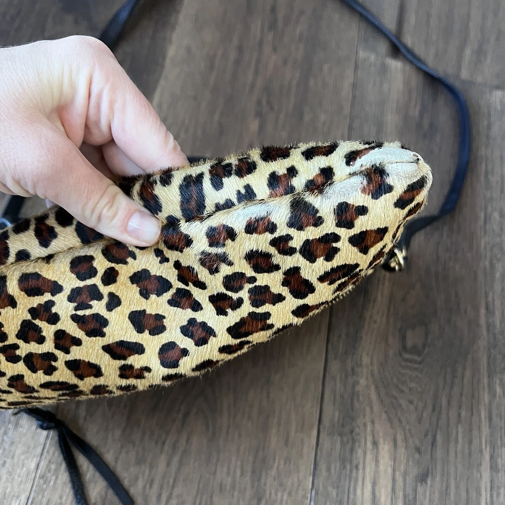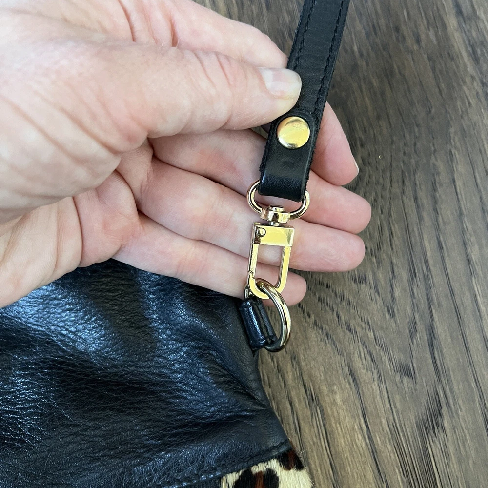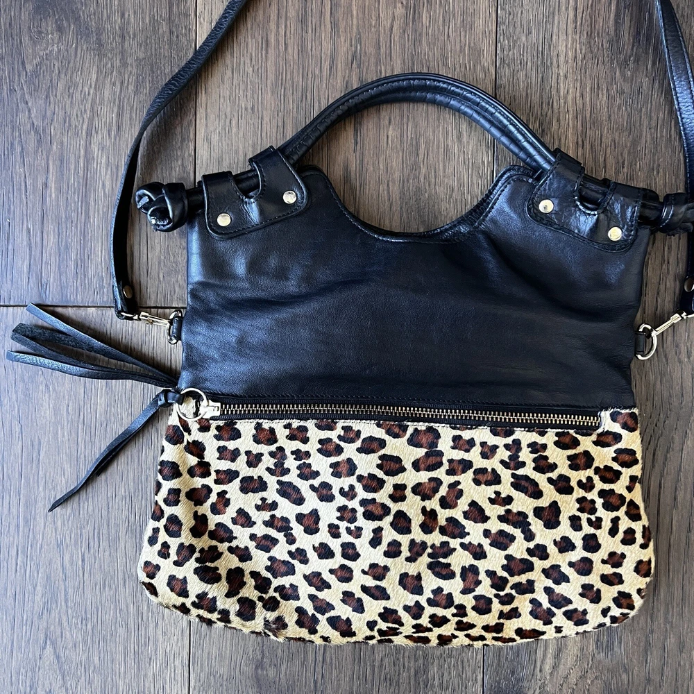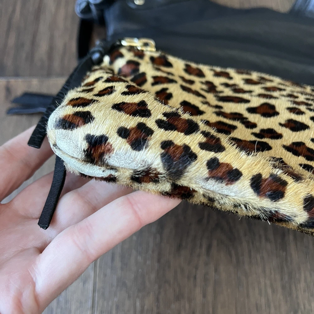 Luciana Verde Good preowned condition. There is rubbing to corners, the calf hair has damage. Hard to see as the leather still has the design. Please see pics. Otherwise in great shape. Handles and hardware in tact. multi carry options: removable crossbody strap, can foldover for use as clutch