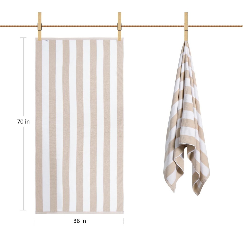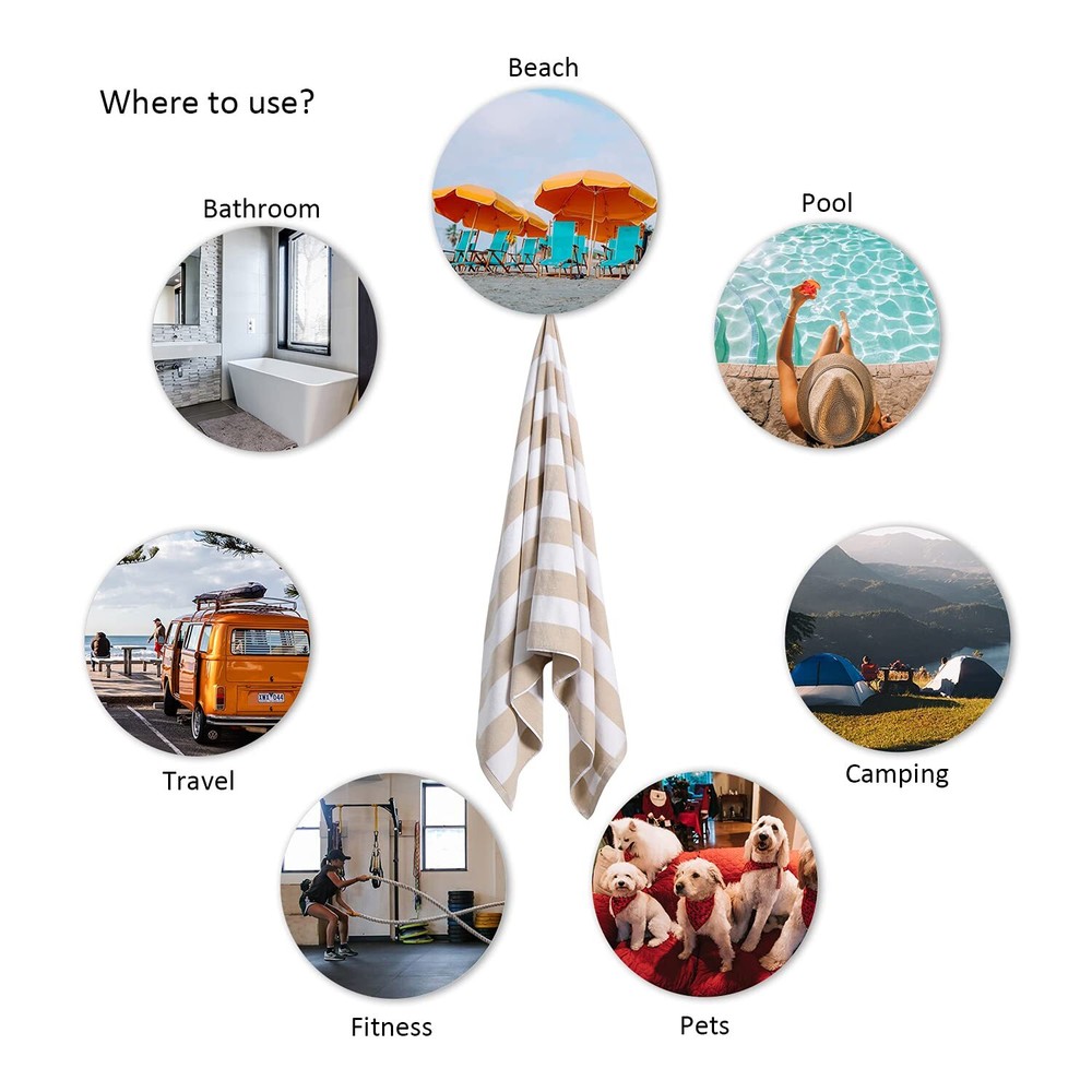 This beach towel is a game-changer! Super soft, ultra-absorbent, and huge enough to lounge on comfortably. The colors stay vibrant even after multiple washes, and it dries quickly. Perfect for beach days, poolside naps, or even as a cozy throw. Love the stylish stripes—great quality for the price!