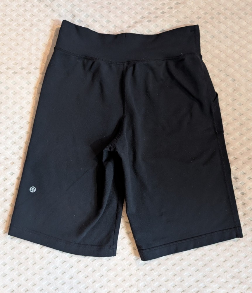 Lululemon black Be Still Bermuda shorts women's size 2. I found these shorts secondhand in good condition. Waist measures 26 inches, inseam is 11 inches.
