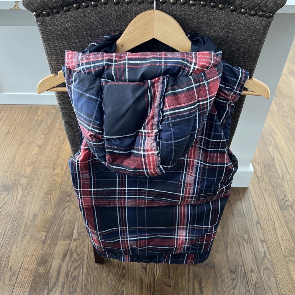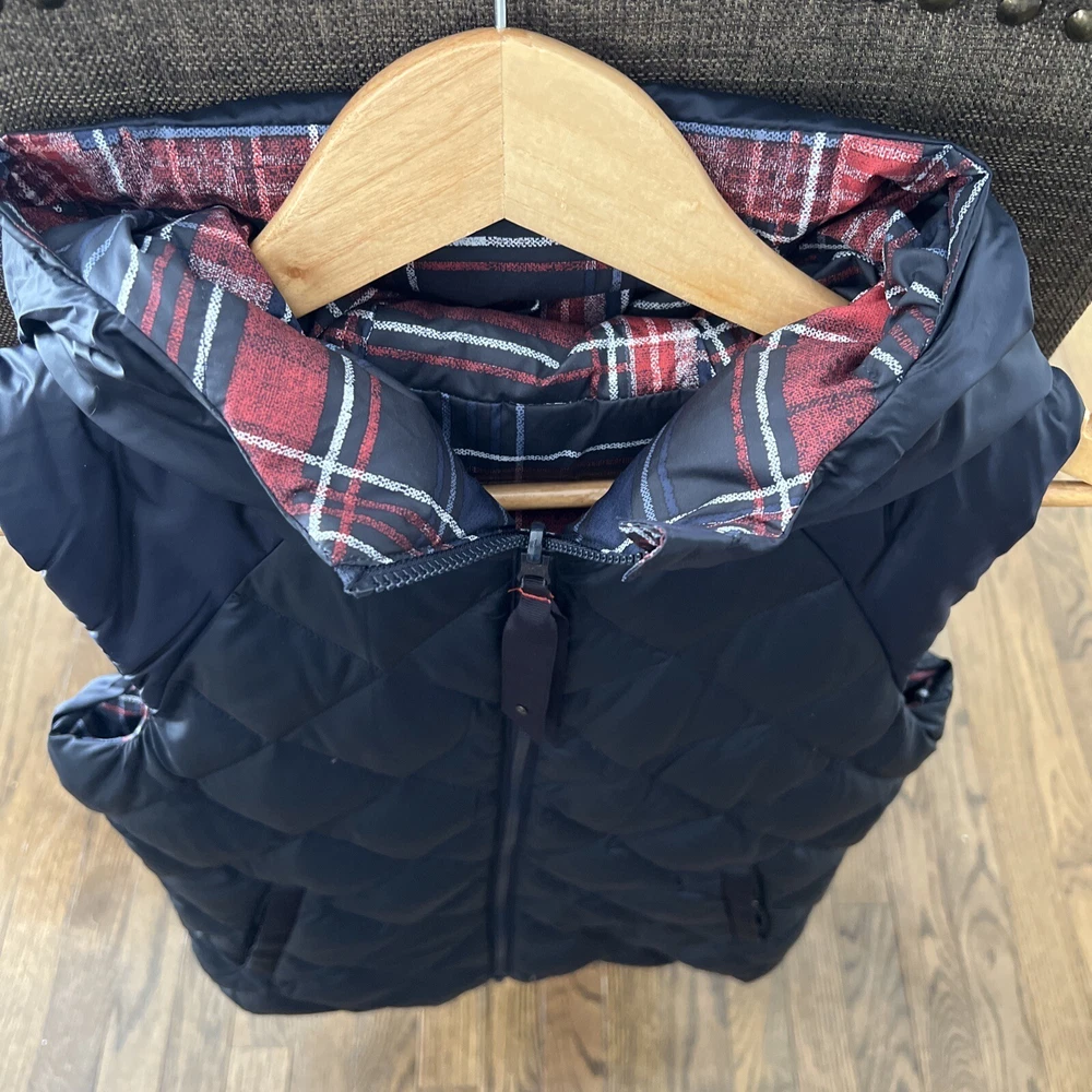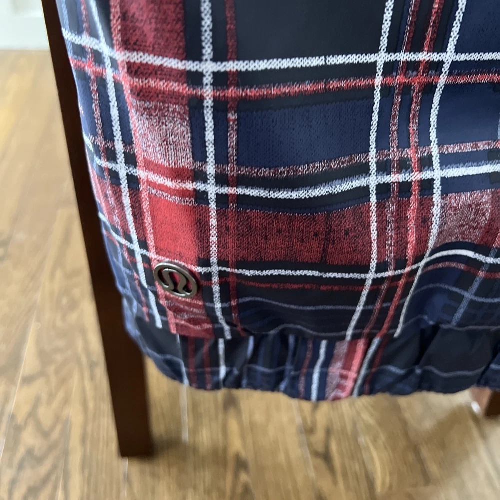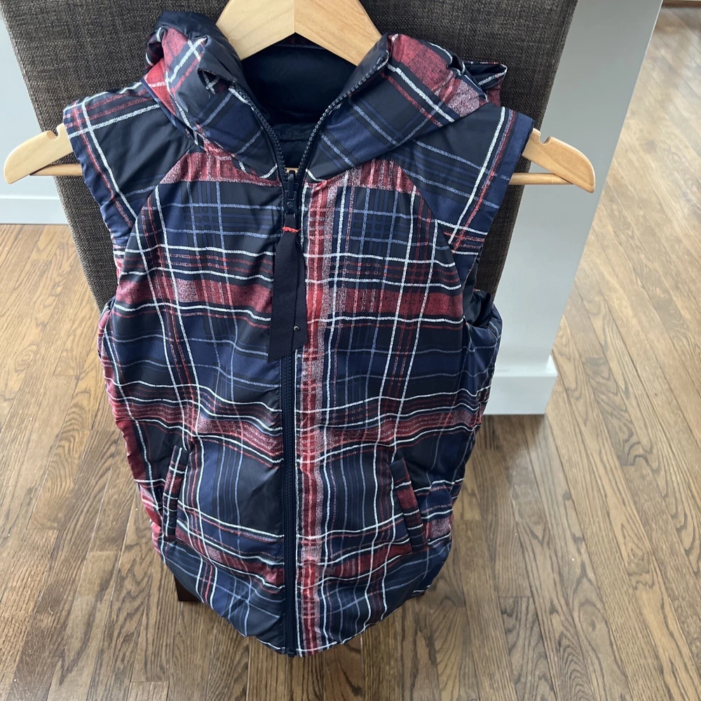 LULULEMON The Fluffiest Vest Naval Blue -Cypress Plaid Red 650 Goose Down Size 2