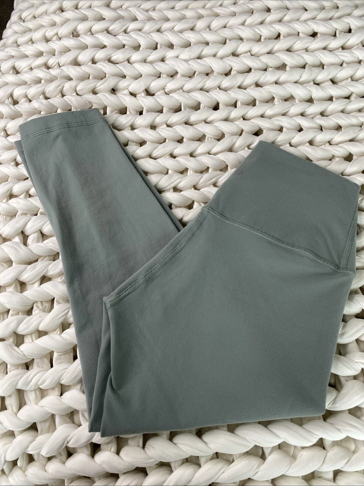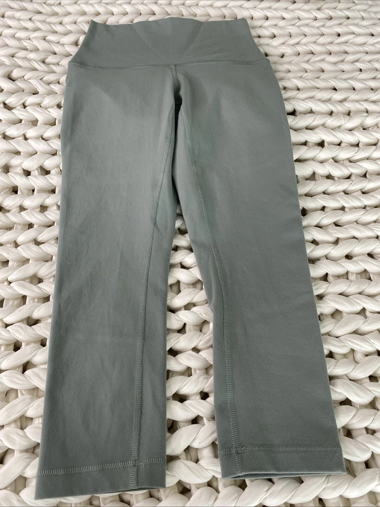 $ 3.7Lulmon Align 23 High Rise Capri Leggings Sage Light Olive Pockets Size 4 EUC Yoga