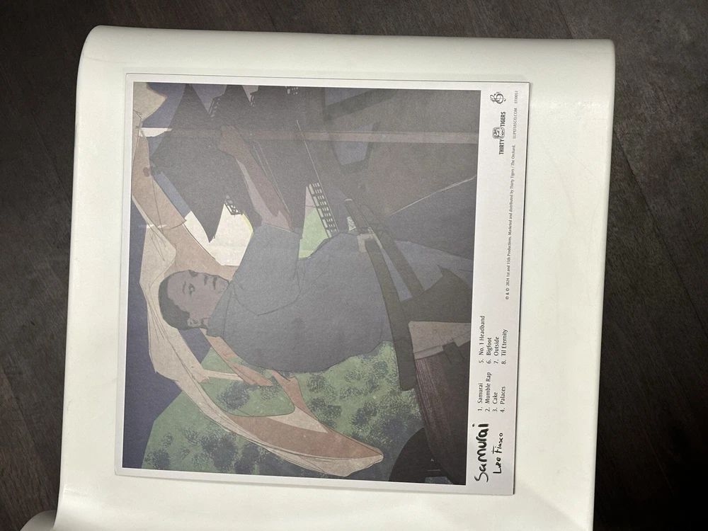 This is a vinyl record album by Lupe Fiasco titled "Samurai". The album features a signed cover by the artist. It is a new LP format release.