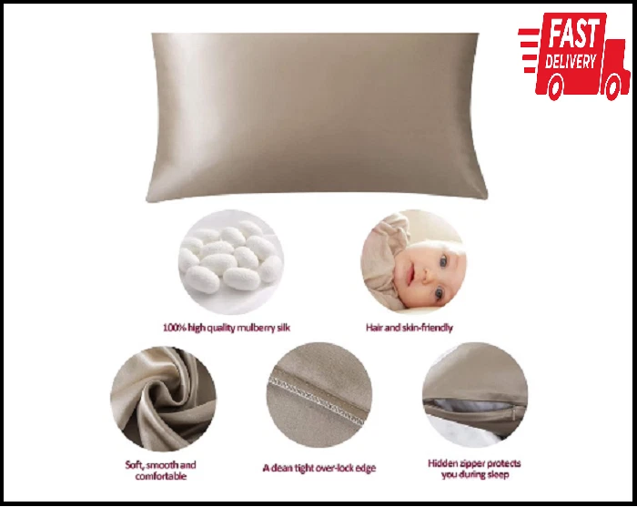 Crafted of 100% pure natural mulberry silk 19-momme 600 Thread Count. Available in a variety of sizes: QUEEN 20x30 inches (50cm x 75cm), KING 20x36 inches (50cm x 90cm), STANDARD 20x26 inches (50cm x 66cm). Super breathable and soft natural material ensure quality sleep. Hidden zipper design adds elegance, noble and comfort. Pure silk prevents hair and skin from discomfort. Our high quality elegant silk is perfect for any bedroom.
