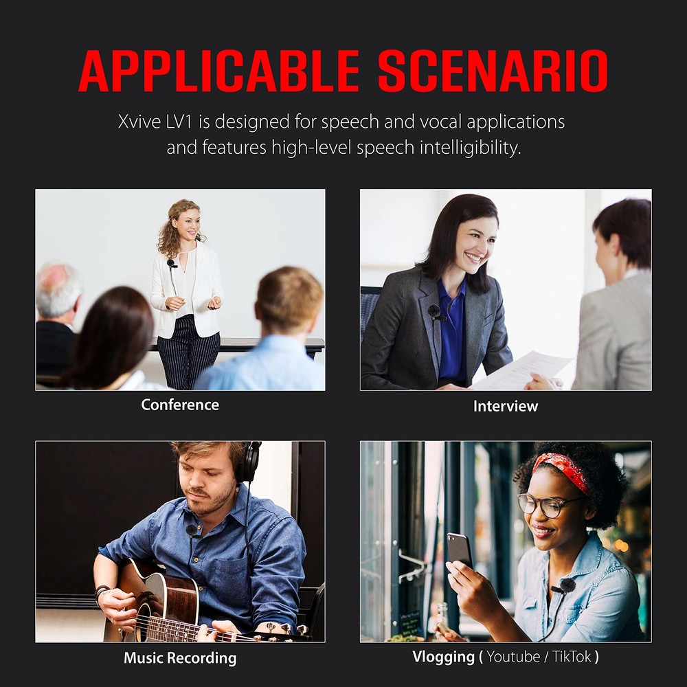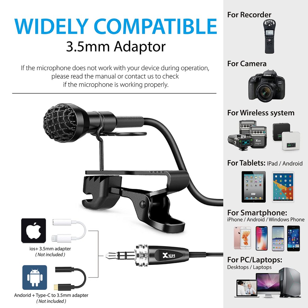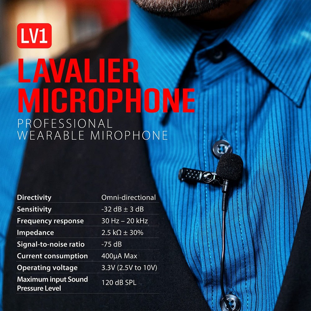TRS Connector: LV1 Lav Mic 3.5mm lavalier microphone has mini microphone head, and MIC lock, all-metal 1/8 Jack,hides well under clothing while you record and does not rip easily;noise-cancelling with fur windshield especially designed for TRS connector device:for U5 wireless lavalier mic System/ broadcast/ recording Smartphones/ Windows/ Macbook.It is a portable vlog Equipment, you can use for YouTube Live, Interview, conference, broadcast and recording device Voice Clear: This lav mic is all you need for a crisp audio that doesn’t hiss,thanks to the high-quality omni condenser! If you are looking for a mic without out noise interference,our Noise Reducion Technology can do the trick,whether you’re a content creator or a hobbyist, It's exactly whant you need to record good sound quality, because the Sensitivity: -32dB±3dB, Frequency response: 30Hz–20kHz,Signal-to-noiseratio: 75dB,Max input Sound Pressure Level reach 120dB SPL Portable and Durable: Small Compact Size Help Easily Clip to Your shirt,Tie or Pocket.Hands-Free Perfect for Filmmakers,Vloggers, Mobile,Journalists,Content Creators,Teacher etc.Mini metal clip allows you to easily clip it to your collar,tie or pocket.We have used state of the art lightweight materials to ensure you barely even notice the microphone is there.The Dimensions is 8×19mm(cable:1.6m/5.25ft) and the weight is 13g /0.46 oz,it’s light andhandy,you can easily take it to anywhere Plug and Play: LV1 lavalier Microphone is a professional lavalier microphone forany Windows PC or Macbook and Android Smartphones etc. You can use it directlyfor connector, no batteries or drivers needed before recording audio, friendly design and easy to use. What's in the box: lavalier mic,windscreen,mic clip,fur windshield,pouch