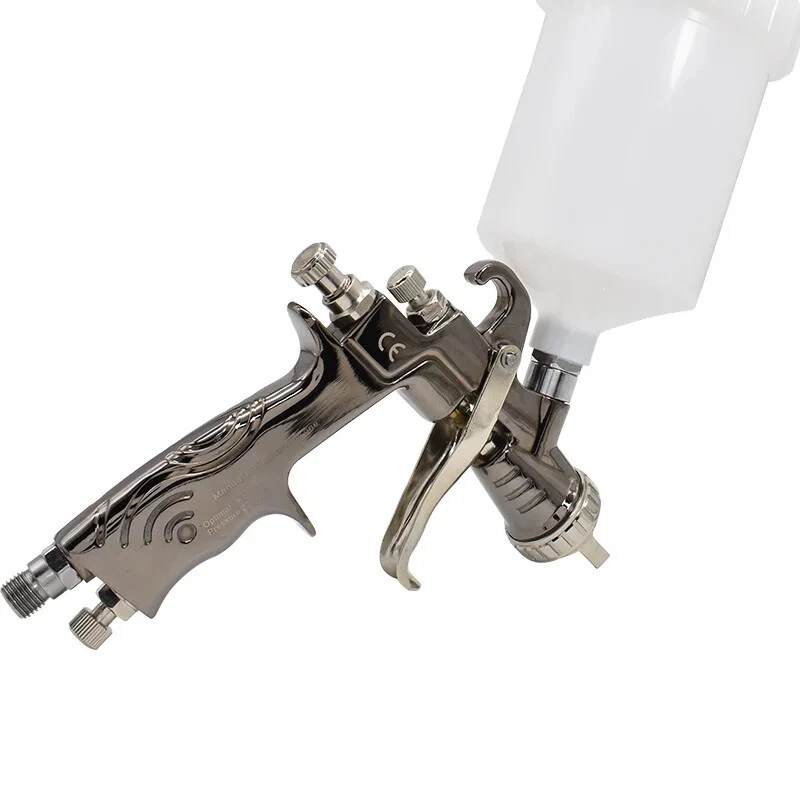 spray gun LVLP paint spray gun 1.3mm 600cc cup air spray gun sprayer professional spray gun for car spraying Technical Features: Nozzle: 1.3mm Recommended working air pressure: 2.0bar/29psi Maximum working air pressure: 3.0bar/40psi Air consumption: 10--11cfm Spray width: about 280mm Spraying distance: 170mm cup capacity: 600ml Product Highlights Low-pressure environmental protection spray gun, high paint transfer efficiency and low paint consumption,economical and environment-friendly. low paint volume, thin paint film, suitable for technicians with fine and delicate spraying habits. 304 stainless steel nozzle and needle, exquisite processing technology , wear-resistant, the atomization performance remains unchanged under long time use. The gun body is processed by Large CNC machining center at one time to ensure that the concentricity of the internal channels is on the same level, ensuring that each product achieves the best atomization performance. Before each spray gun be delivered,each spray gun's atomization performance has passed two strict manual inspections to ensure the excellent quality. The adjusting knobs and other accessories are processed by high-precision CNC equipment, with good hand feeling and flexible and comfortable rotation. Application scope: high surface spraying requirements such as automobiles, motorcycles, musical instruments, handicrafts, etc.
