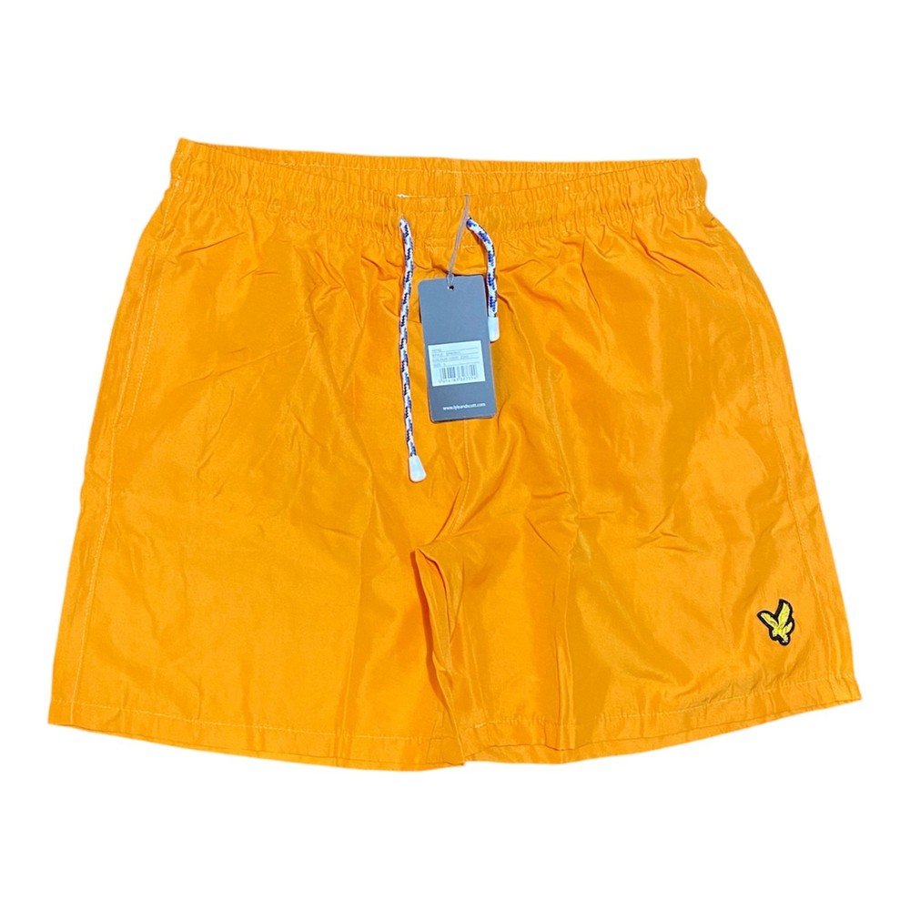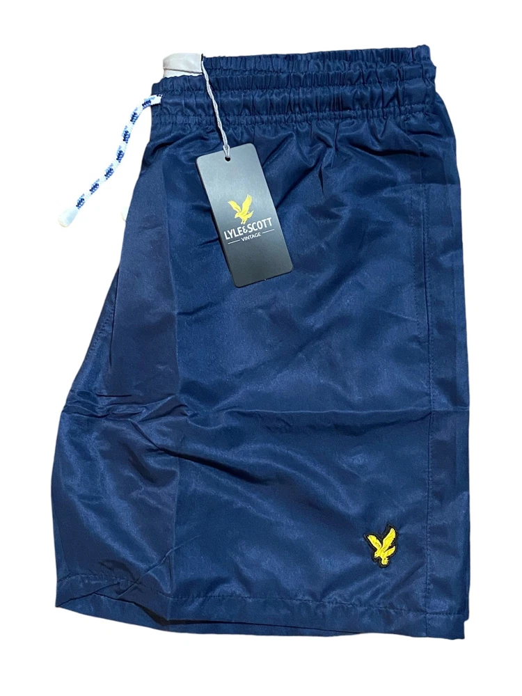 LYLE AND SCOTT SWIM SHORTS FOR MEN IN 4 COLOURS Lyle & Scott Classic Swim Shorts styling with elasticated waistband and drawstring. Featuring a mesh lined brief for added comfort and support, 2 side pockets and a velcro-fastened back pocket. Embroidered golden eagle logo on the left leg. Leg Length 40 cm. COLOURS : BLACK, DARK NAVY BLUE, ROYAL BLUE,ORANGE SIZES : SMALL, MEDIUM, LARGE, XL, XXL PLEASE CHECK SIZE CHART BEFORE YOU BUY Size Waist ( (inches) Length ( (inches) Small 28 14 Medium 30 15 Large 32 16 XL 34 17 XXL 35 17.5