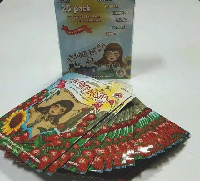 Installation Area:HangingModel:Eivy's Mexico La Chica FresitaMaterial:PaperScent:StrawberryBrand:LA ChicaType:Car Air FreshenerMPN:10DM-1Country/Region of Manufacture:MexicoNumber in Pack:10
