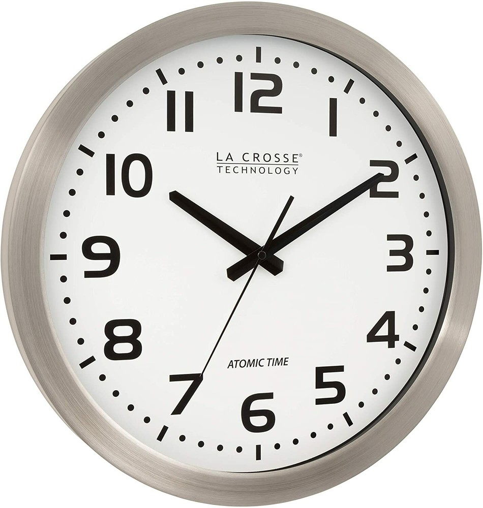 Brand New La Crosse Technology 16-Inch Atomic Clock White Dial 16" Stainless Steel Frame Model #: WT-3161WH Product Features: · Automatically sets to exact time · Accurate to the second · Automatically updates for Daylight Saving Time (ON/OFF option) · 4 Time zones: PT, MT, CT, ET · Simple Operation: Insert 1 AA Alkaline Battery (not included)