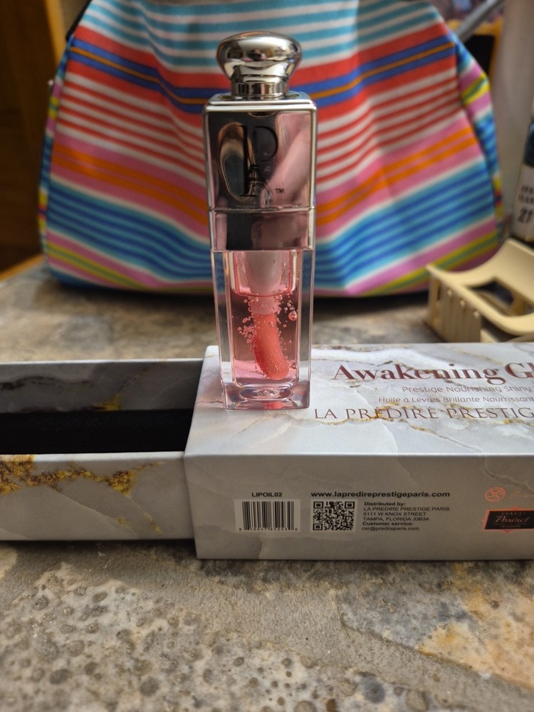 The La Predire Prestige Paris Awakening Glow Lip Oil is a luxurious lip oil designed to provide intense hydration and nourishment. With a peach shade and shiny finish, this lip oil adds a subtle glow to your lips while keeping them moisturized. The 0.2 fl oz size and standard packaging make it convenient to use and carry around, perfect for keeping your lips looking healthy and shiny all day long. retailed at $120