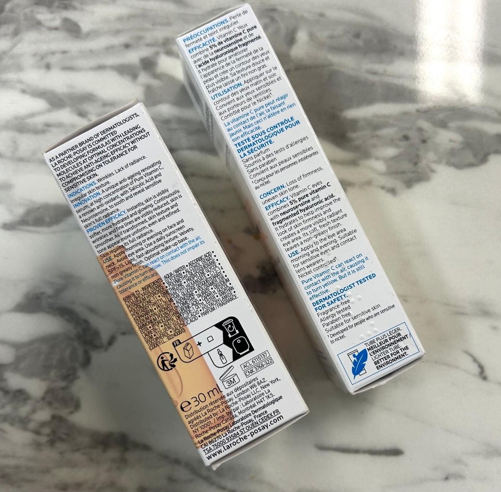 La Roche-Posay Skincare set Contains: PURE VITAMIN C 10 BRIGHTENING SERUM 30ml $74.95 (AUD) (Vitamin C Anti-wrinkle serum for sensitive skin) La Roche-Posay Redermic [C] Eyes 15ml $49.95 (AUD) (Anti-ageing eye cream) La Roche-Posay’s vitamin C face serum is a brightening serum with anti-ageing benefits that’s formulated with a combination of concentrated 10% vitamin C & salicylic acid, helping boost skin’s radiance & skin tone through exfoliation, visibly reducing appearance of wrinkles, improving skin texture & more The formulation also includes Neurosensine & Thermal Spring Water which help support skin’s moisture barrier function, helping minimise any discomfort - making this vitamin C serum suitable for use on sensitive & reactive skin Vitamin C Eye Cream is specifically designed for the delicate skin around the eye area contours which is often the first area of the face to show signs of ageing Specifically designed to tackle signs of ageing around the eyes, including, wrinkles, loss of firmness, uneven complexion, discolouration, loose skin & sensitive skin Formulated with Vitamin C, which is recognised for its anti-ageing & complexion brightening effects and combined with other anti-ageing ingredients to brighten, plump & smooth as well as reducing appearance of fine lines and wrinkles Brand new, boxed (have duplicates) RRP $125 value, selling together for $90 ONO Pls note all my makeup and skincare items are genuine and brand new. All were purchased at full retail price within this year - I just have a major shopping addiction and beauty is my kryptonite but at the end of the day I only have one face so am trying to downsize as Ive run out of space!! Having a MASSIVE clear out so take a sec to check out my other listings - am selling loads of clothes (mix of BNWT, designer, fashion, pre loved and vintage) plus bags and shoes as well as loads of beauty, makeup and skincare. Am open to reasonable offers and happy to combine postage - will also consider discounts if purchasing multiple items #beauty #makeup #powder #cosmetics face base likenew, complexion products, Sephora, Mecca trending professional viral TikTok