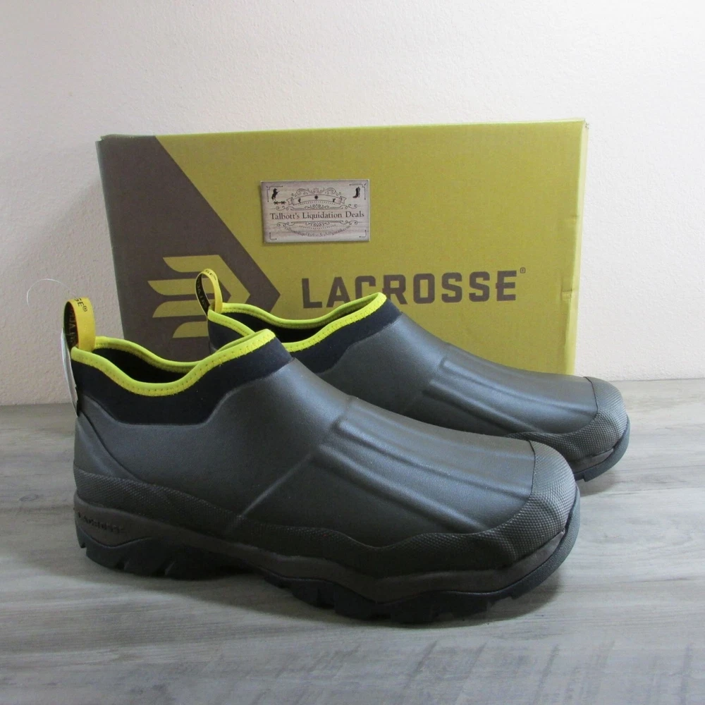 Brand new with tags and Box Men's Size Brand: LaCrosse Footwear Color: Brown Style # 612441 Alpha Muddy 4.5" Rain Garden Clog Boots **Box may have some cosmetic damage/Boots may have been tried on in store**