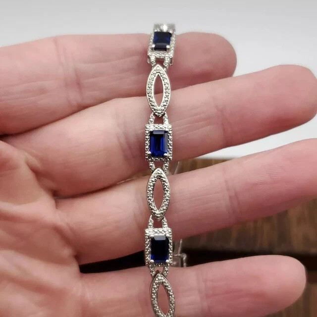 12ct Lab Emerald Sapphire Wedding Tennis Bracelet 14K Gold Plated