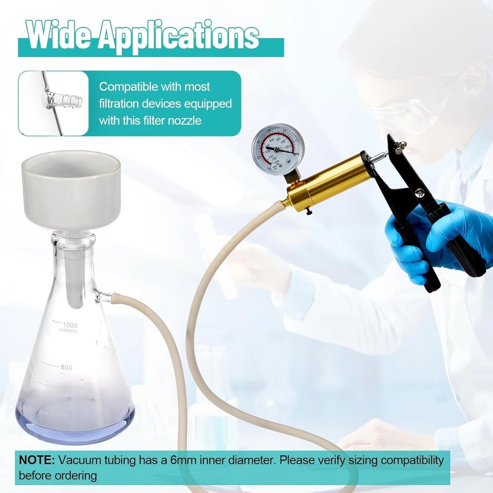 DESCRIPTION PAYMENT SHIPPING RETURN POLICY CONTACT US Shop Category Store Home vials Analytical Balance Buchner Funnel Flask Kit Other Hot Item buchner funnel filtering kit vacuum filter flask set with 1000ml filter bott USD 42.99 10Pcs 60mm Glass Petri Dishes with Lids Autoclavable Lab Petri Plates Reusable USD 18.99 Microscope Stage Micrometer Calibration Slide 0.01mm with 4 Scales USD 12.99 1000gx0.01g Analytical Balance Digital Lab Scale High Precision Electronic Scale USD 20.99 60/90/100mm Glass Petri Dishes with Lids Autoclavable Lab Petri Plates Reusable USD 28.99 Delivery New List Item 30L Lab Water Bath Digital Thermostatic Heating Modules Timing Function USD 389.99 20ml Scintillation Vial Liquid Sample Vials Clear Glass Vials Cone Liner 1000pcs USD 45.99 Magnetic Stirrer Mixer 0-1600 RPM with Stir Bar Max 1000ml Stirring Capacity US USD 27.99 20ML Scintillation Vials 100PCS Lab Borosilicate Glass Liquid Scintillation Vial USD 34.99 60ml Water Oil Receiver Separator w/ 24/40 Joint , Stand Glass Lab Distillation USD 39.99 Help & Info Payment Policy Shipping Policy Return Policy FAQ About Us Lab Manual Hand Vacuum Pump Lab Hand-held Vacuum Pump Pressure Suction Pumps Package includes: 1 manual vacuum pump with pressure gauge, 1m (39") tube for filtration Premium Construction: Our heavy-duty handheld vacuum pump features a high strength metal housing. The flexible tube maintains excellent elasticity and fits most standard vacuum filter inlets Rapid Vacuum Filtration: This hand held vacuum pump speeds up filtration significantly—ideal for processing large volumes or viscous liquids. Unlike slow gravity filtration, it delivers fast within short time Simple Operation: Generates 0-30 inHg (0-760 mmHg) vacuum pressure. Simply connect the pump and tube to your filter unit's nozzle, then pump the handle to create suction. The air then quickly releases through the exhaust port while filtering Wide Applications: Wide Applications: This compact vacuum pump works with most filtration systems, perfect for labs, classrooms, and mechanism. Note: Hose inner diameter is 6mm - please check sizing before ordering Item Specifics Brand : Creahub Intended Use/Discipline : Biological Laboratory Model : Vacuum Pressure Pump Tester Kit Feature 1 : Wide Applications Feature 2 : easy to use Refund will be given as : Money back or replacement (buyer's choice) Payment A dditional shipping fee may be charged for buyers from Puerto Rico, Hawaii, Alaska, Guam, and the U.S. military address of the United States or other remote area (zone 8-10). Most of the items come with a 30-day warranty covering manufacturing defect. High value products would get a longer warranty, some of them up to 2 year or 5 years or lifetime warranty, excluding any damage by the user. Shipping Ship from: California USA or KY Warehouse Or IL warehouse Or NY Warehouse. US: about 1-6 business days; Note:Please leave us your detailed valid street address because big package is not allowed to be stored in PO.BOX. Returns 1)Buyers are responsible for the item return shipping fee. 2) Please note that all return must be pre-approved by our co-worker,and it have a return merchandise anthorization(RMA)number.Unauthorzed return will not be accepted. Contact Us 1) We greatly appreciate your Five Stars Positive feedback. It means a lot to us. Thanks for your support. 2) You can bookmark our store for your next purchase All right reserved.