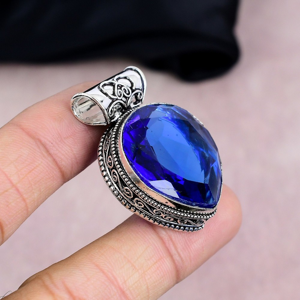 Main Stone Creation:Lab-CreatedPendant/Locket Type:Same As PictureOccasion:Anniversary, Birthday, Christening, Christmas, Engagement, Father's Day, Graduation, Mother's Day, Valentine's Day, WeddingDiamond Clarity Grade:N/ASetting Style:BezelStyle:PendantTotal Carat Weight:10 carat and aboveCountry/Region of Manufacture:IndiaSecondary Stone:N/ACertification:N/AChain Type:N/ACut Grade:N/AFeatures:HandmadeCountry of Origin:IndiaTheme:Beauty, Bohemian, Ethnic, Halloween, Love, NatureMetal:Sterling SilverNumber of Diamonds:N/AColored Diamond Intensity:N/AMain Stone:Blue SapphireMain Stone Treatment:Not EnhancedType:PendantPendant Shape:Same As PictureMain Stone Shape:PearDiamond Color Grade:N/ACollection:HandmadeBase Metal:Sterling SilverMaterial:GemstoneClosure:Same As PictureColor:SilverMain Stone Color:BlueBrand:HandmadeMetal Purity:925Number of Gemstones:1Necklace Length:4.2"