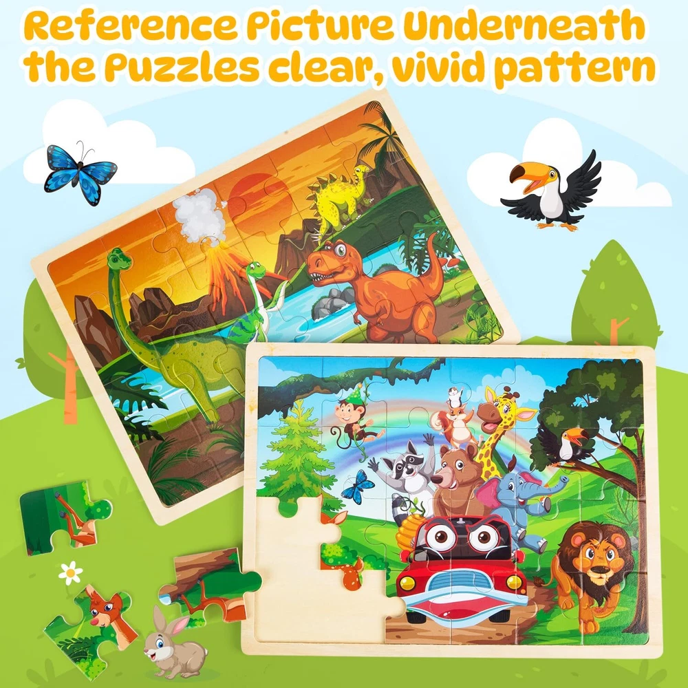 Labeol Toddler Wooden Puzzles for Kids Ages 3-5, 24 Pieces Wood Puzzles for Toddlers 2-4 Preschool Educational Brain Teaser Puzzles Boards Toys Gift for 3 4 5 6 7 8 Years Old Boys Girls 1 VIVID WOOD PUZZLES TOYS FOR KIDS: These wooden jigsaw puzzles set contains 24 durable and colorful wooden puzzles pieces and these pieces can fit together perfect and smoothly with fine cutting to display a vivid zoo animal world. Kids will have the endless fun building the different animal world DURABLE & SAFE WOODEN MATERIALS: These wooden puzzles for kids toddlers are made of high quality wood materials and we adopt fine cutting techniques, the edges of each kids wooden puzzles pieces are carefully polished. Smooth surface and edges ensures no accidental scratches so that kids can use and play it safely. The durable wooden puzzles for toddlers 3-5 can be used repeatedly for a long time STURDY WOODEN TRAY& CLEAR REFERENCE PICTURE: Each wooden puzzles for kids toddlers have a wooden frame to help kids keep the jigsaw puzzle pieces in place and there is a clear reference picture underneath each wooden puzzles, which can guide kids where to place and easy for kids to complete the wooden jigsaw puzzles so that kids can get a great sense of achievement GREAT EDUCATIONAL PUZZLE TOYS: These wooden jigsaw puzzles for kids ages 3-8 can help kids train their imagination, develop eye-hand coordination, problem-solving and spatial reasoning skills while kids enjoy the wooden puzzles games. It can also keep children away from electronic devices and enhance parent-child interaction PERFECT GIFT IDEA FOR KIDS: The kids wooden puzzles toys are ideal gift choice for birthday, Christmas, Thanksgiving, Easter, Preschool and kindergarten opening and other important days. These toddler wooden puzzles set with the exquisite box is very suitable for kids ages 3 4 5 6 7 8 boys and girls to play indoor and outdoor. You can send the gift to the kids of your family or friends as a lovely surprise! Shipping from the USA All of our products are shipped from the USA, ensuring quick delivery to your destination. Payment We offer the following payment methods: PayPal, credit card, bank transfer, and eBay's secure payment system. Free Shipping & Free Returns Shipping within the USA is FREE. Additionally, any return is absolutely free for you. Risk-Free Purchase You have the option to return an item within 30 days without any justification. We cover the return shipping costs! Fast Shipping We ship immediately upon receipt of payment. Generally, the package is delivered within 2-3 days in the USA. If it takes longer, we will contact you. Quality and Costs Made in Europe, USA, China No customs fees or additional charges Total satisfaction guarantee Invoice with declared VAT available upon request in .pdf format Feedback Your feedback is very important to us. After you pay for your purchase, you will automatically receive positive feedback from us.