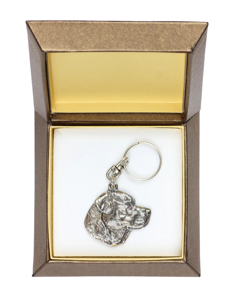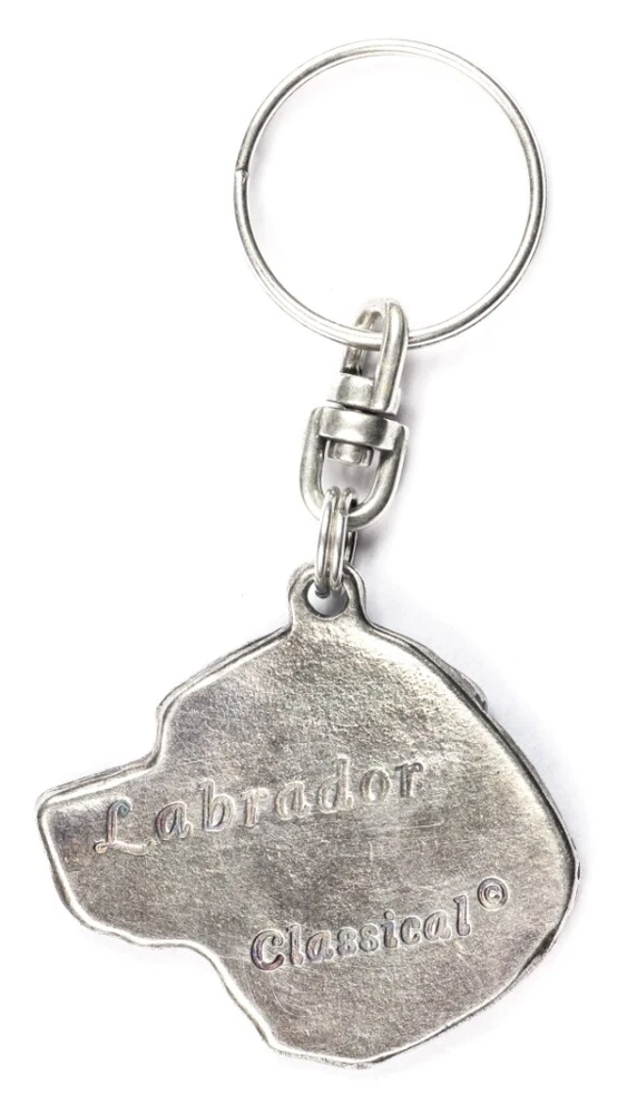 Labrador Retriever - Silver-plated pendant with a dog in a decorative box, handbag decoration, backpack pendant by Art-Dog brand A key ring in the form of an adorable dog's muzzle is the perfect accessory for any four-legged lover. Made in Poland by a talented artist, ensuring not only high quality but also a unique design. It has been carefully crafted with attention to detail, which gives it a unique charm. It retains the characteristic features of the breed, which adds to its authenticity. The pendant has a classic key ring, allowing for easy installation of the keys. The silver plated metal keyring adds elegance and style, being not only practical but also an aesthetic addition to your keys, handbag or backpack. It is packaged in an elegant gift box and is also perfect as a gift for a loved one. Our key rings are sure to bring a lot of joy to doggie owners. They are perfect as a birthday gift, name day gift, and for dozens of other occasions such as the adoption of a new pooch or a memento after the loss of a dog. Our key rings are also available in other variants and without decorative boxes. Check out our other offers for more information. Dimensions: check the dimensions in one of the attached photos. Material: Zinc and aluminium alloy (ZnAl), silver plated. The product is subjected to a patination process.